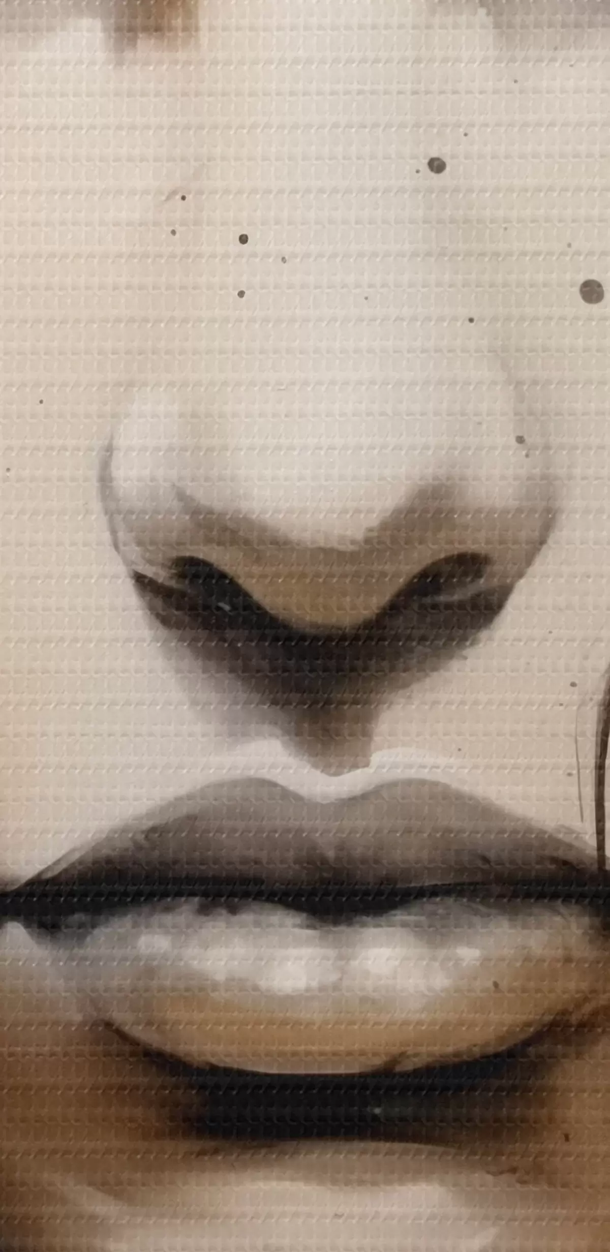 Selle lõuendi peenike niidipunus meenutab professionaalse kunstniku lõuendi pinda.