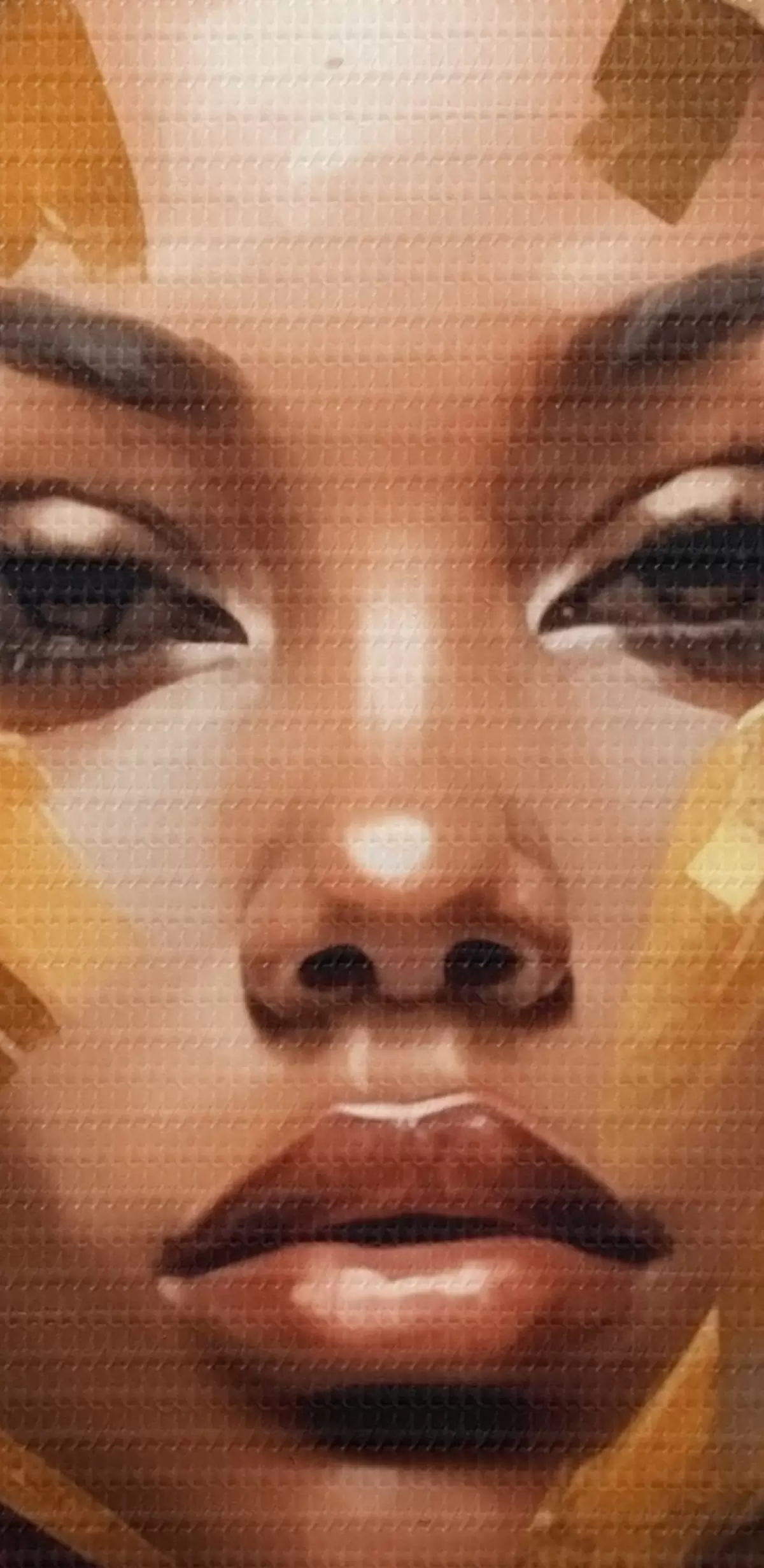 Selle lõuendi peenike niidipunus meenutab professionaalse kunstniku lõuendi pinda.