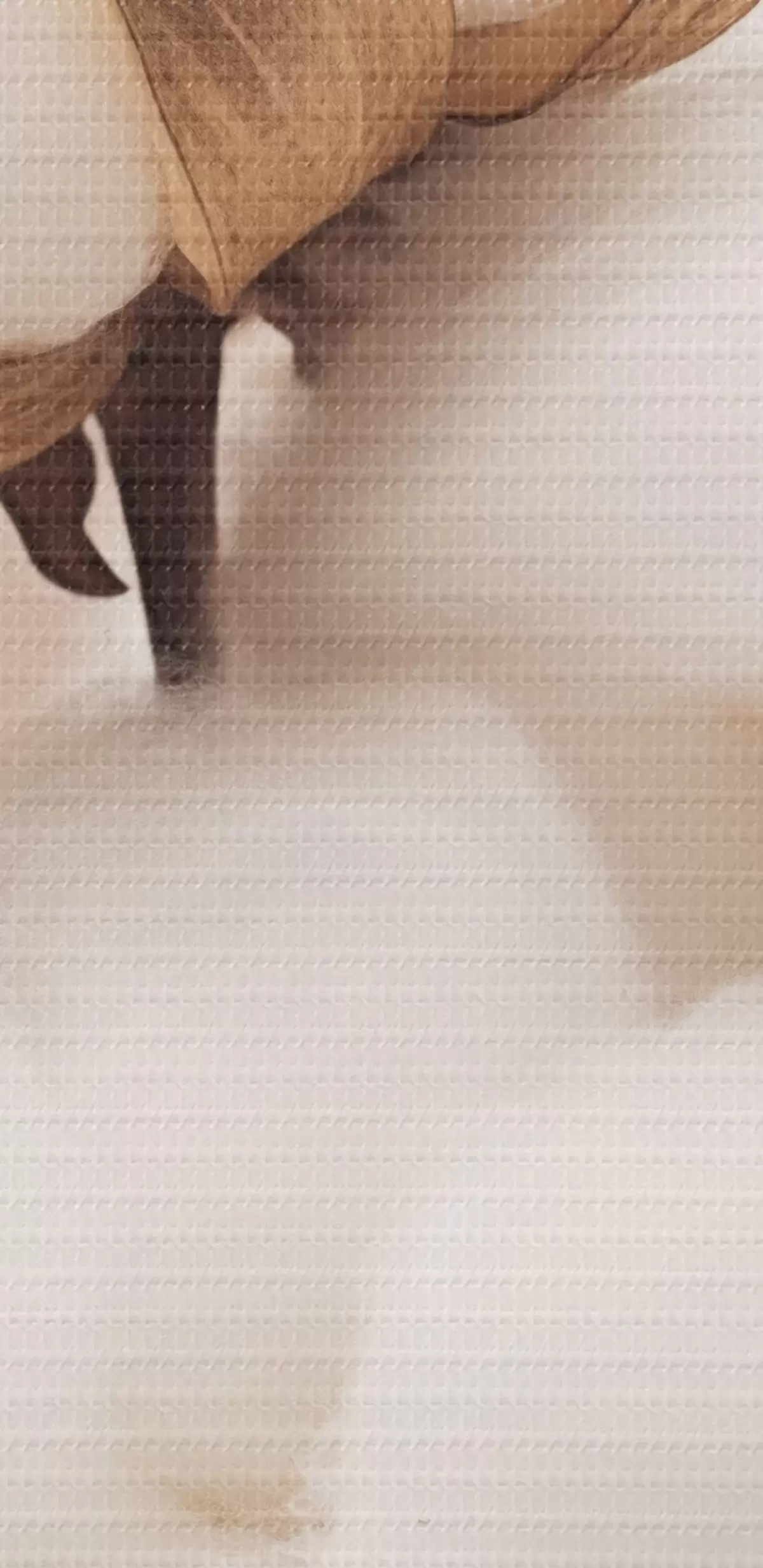 Selle lõuendi peenike niidipunus meenutab professionaalse kunstniku lõuendi pinda.
