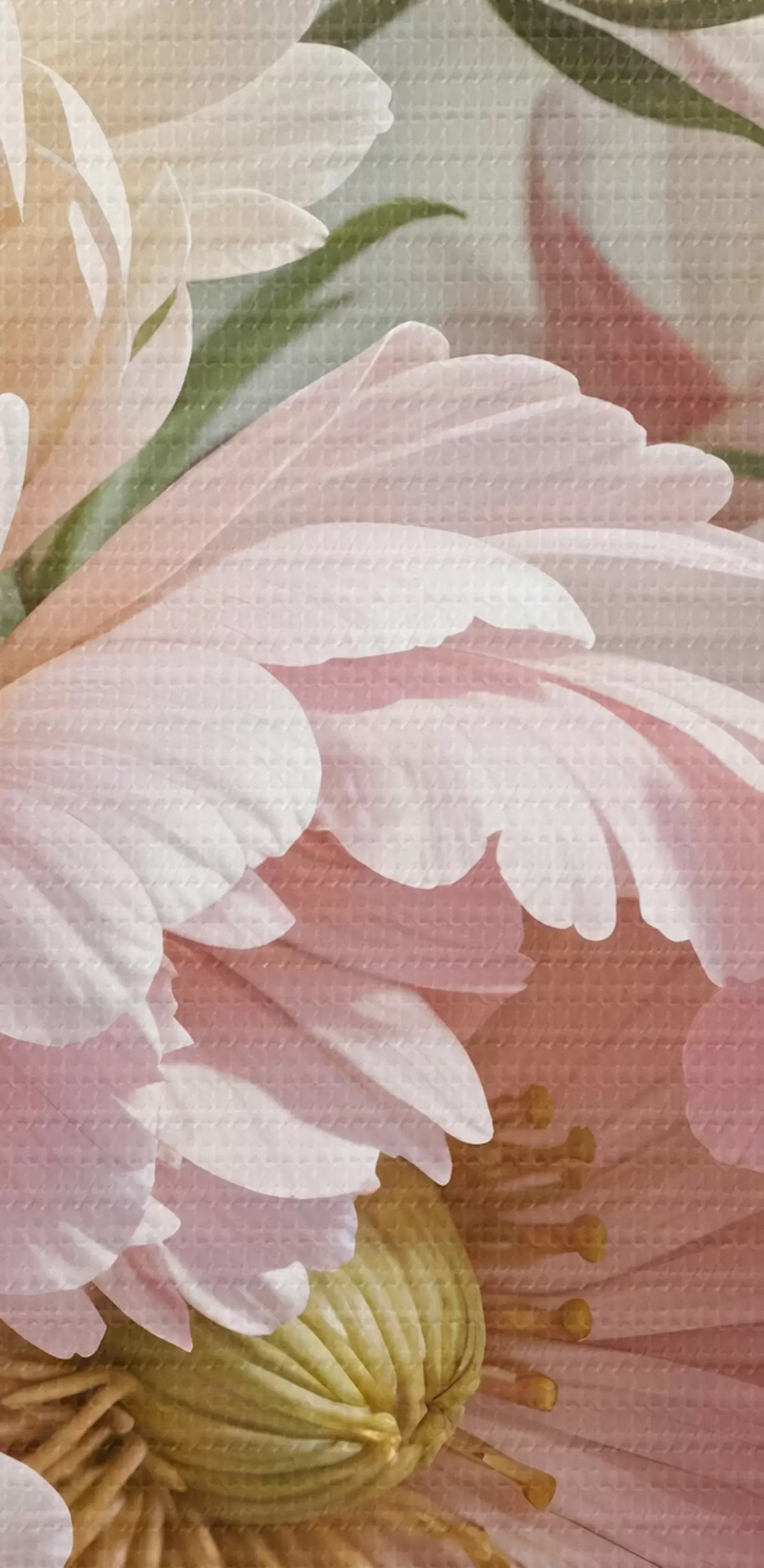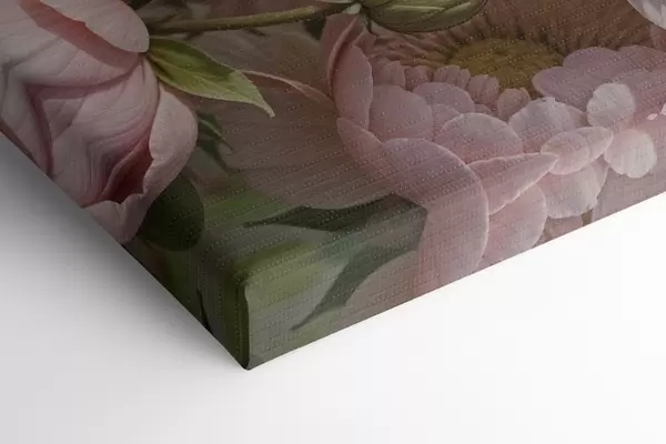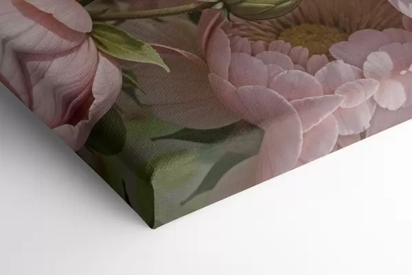 Maalid Mitmed suured, lopsakad, õrnade kroonlehtedega roosa ja valge varjundiga pioonililled Nr s41729