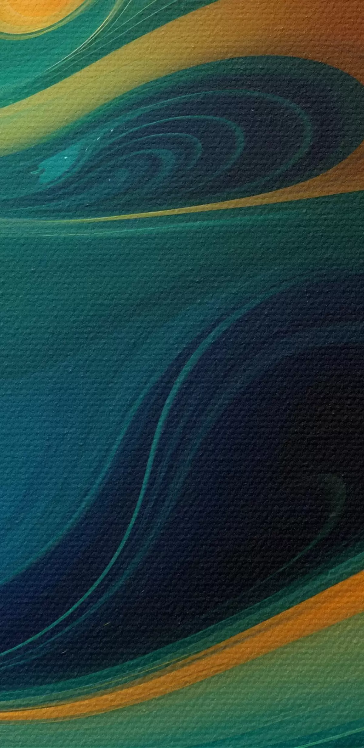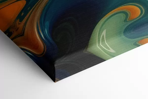 Maalid Roheliste, siniste ja oranžide toonide keerlevad abstraktsed mustrid koos voolavate, orgaaniliste vormide ja tekstuuridega Nr s41737