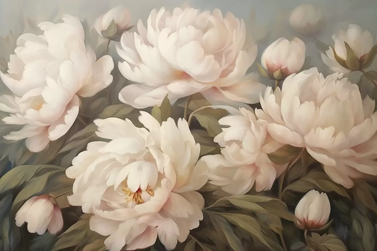 Maalid Lilled ja lehed hägusel taustal Nr s41763