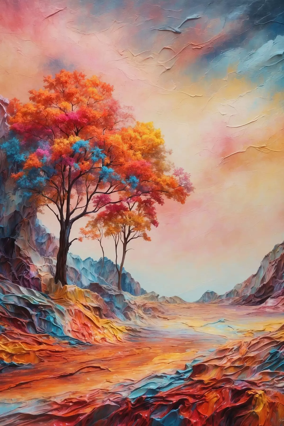 Maalid Puud ja abstraktsed mitmevärvilised mäed Nr s41772