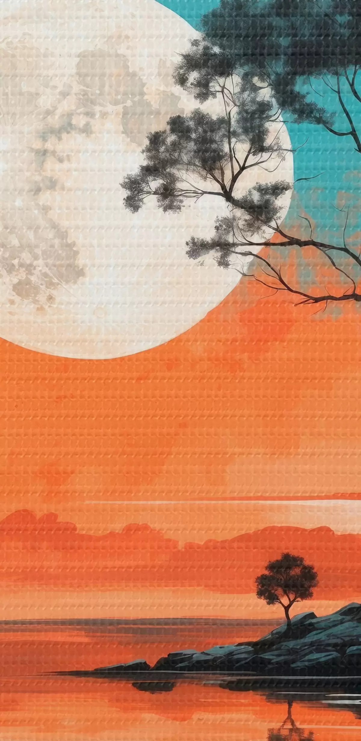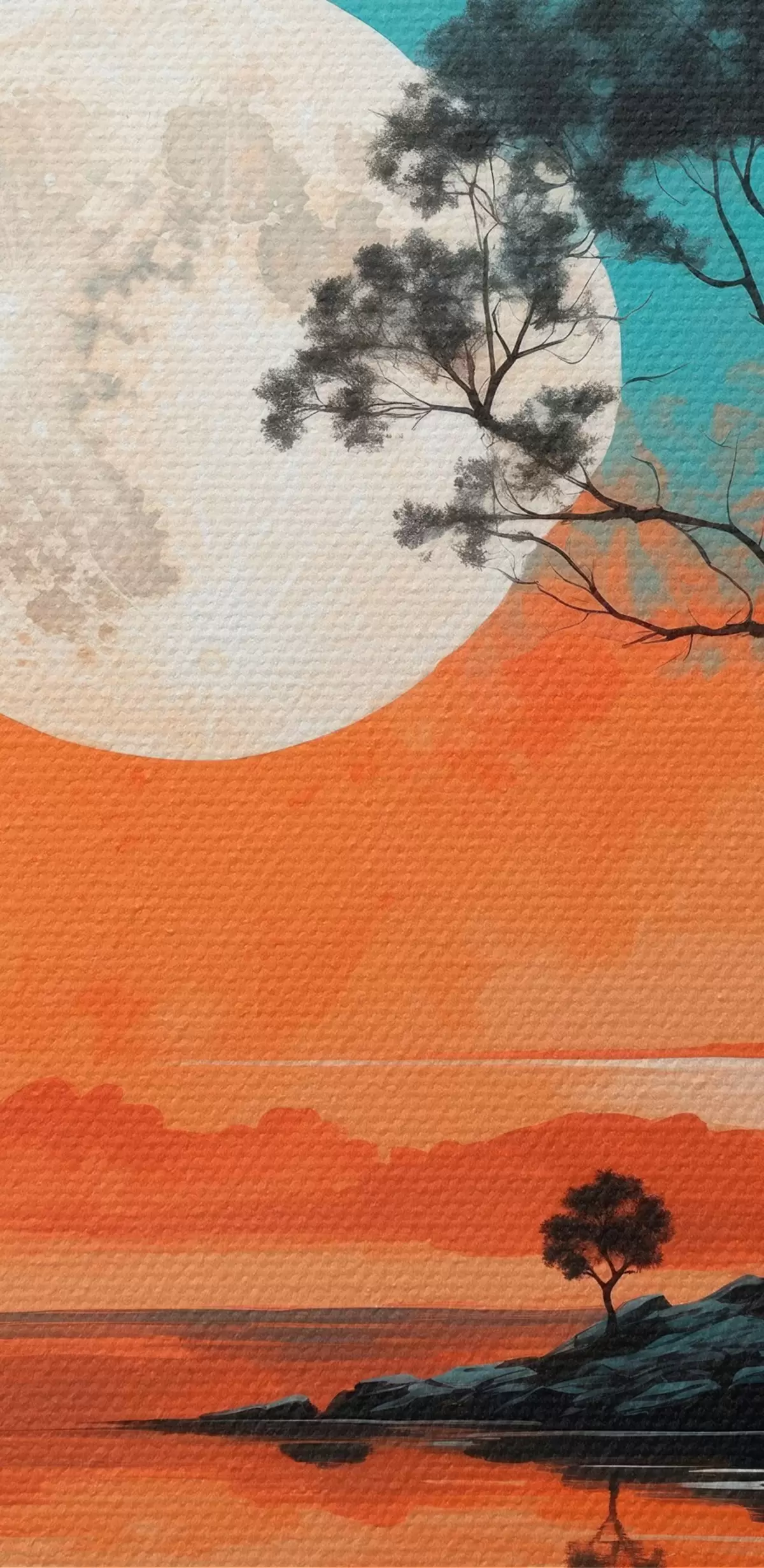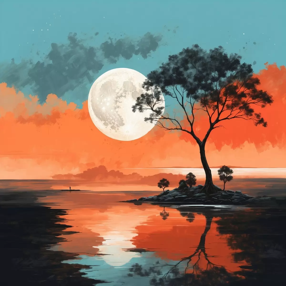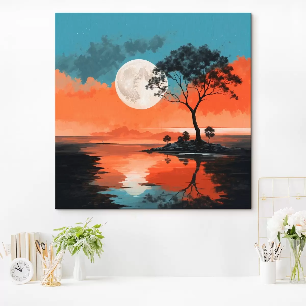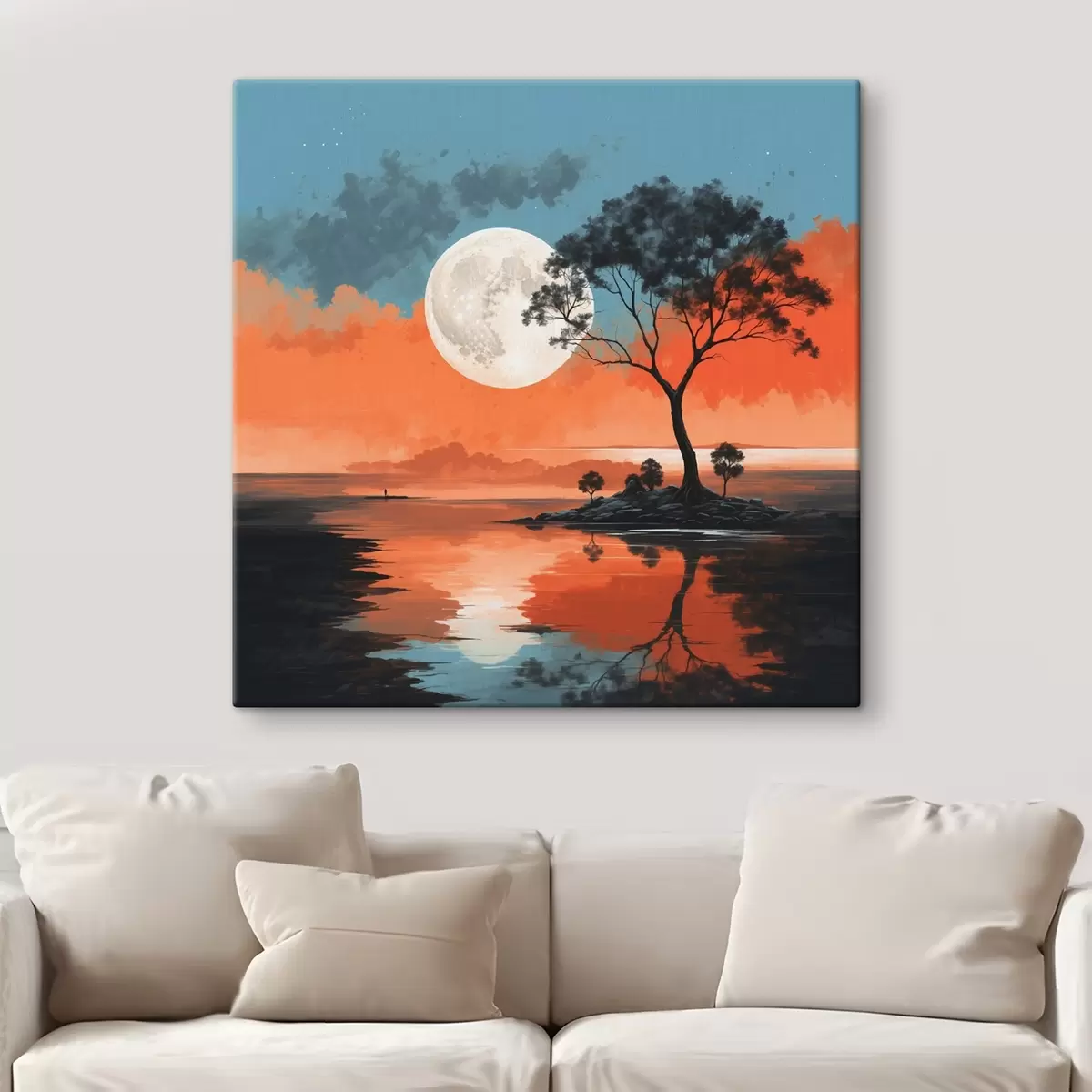 Maalid Puu keset järve taustal kuu taustal Nr s41775