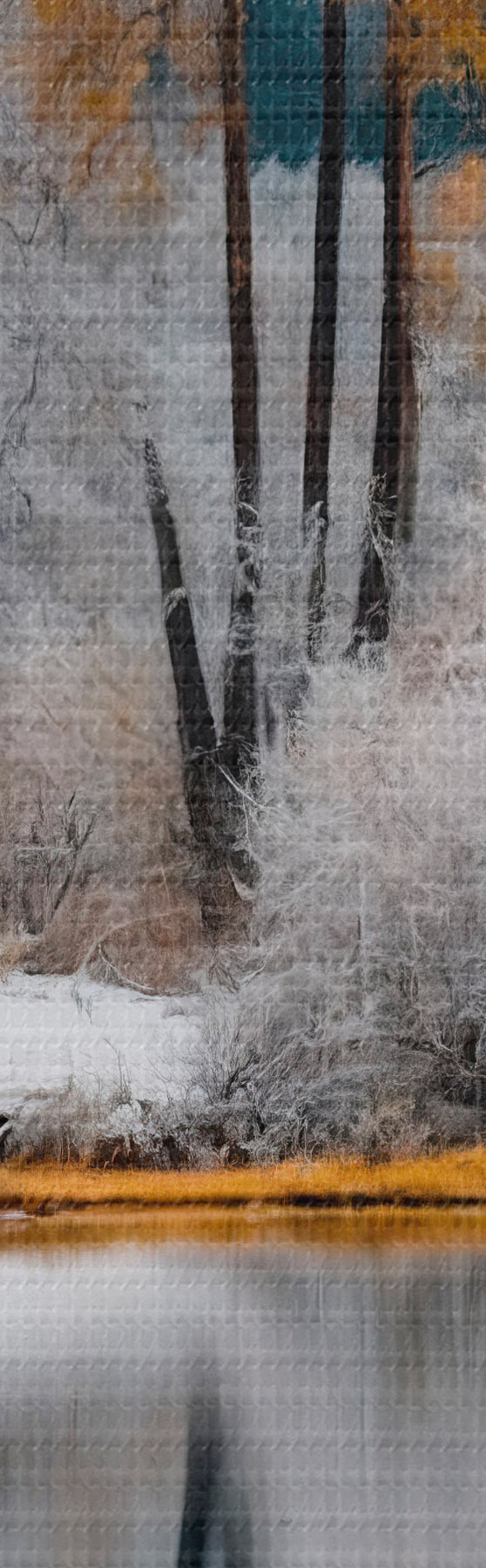 Selle lõuendi peenike niidipunus meenutab professionaalse kunstniku lõuendi pinda.