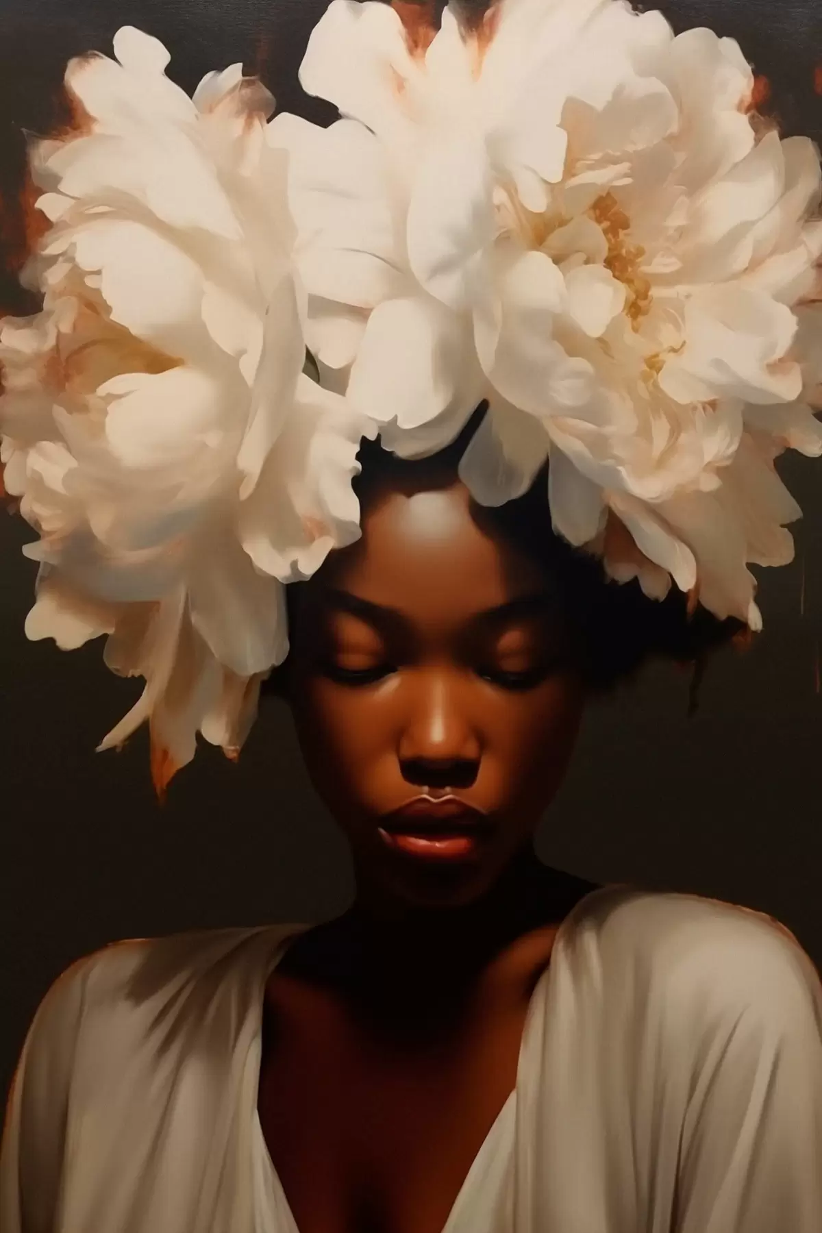 Maalid Tüdruk mudel ja lilled tema juustes Nr s41799