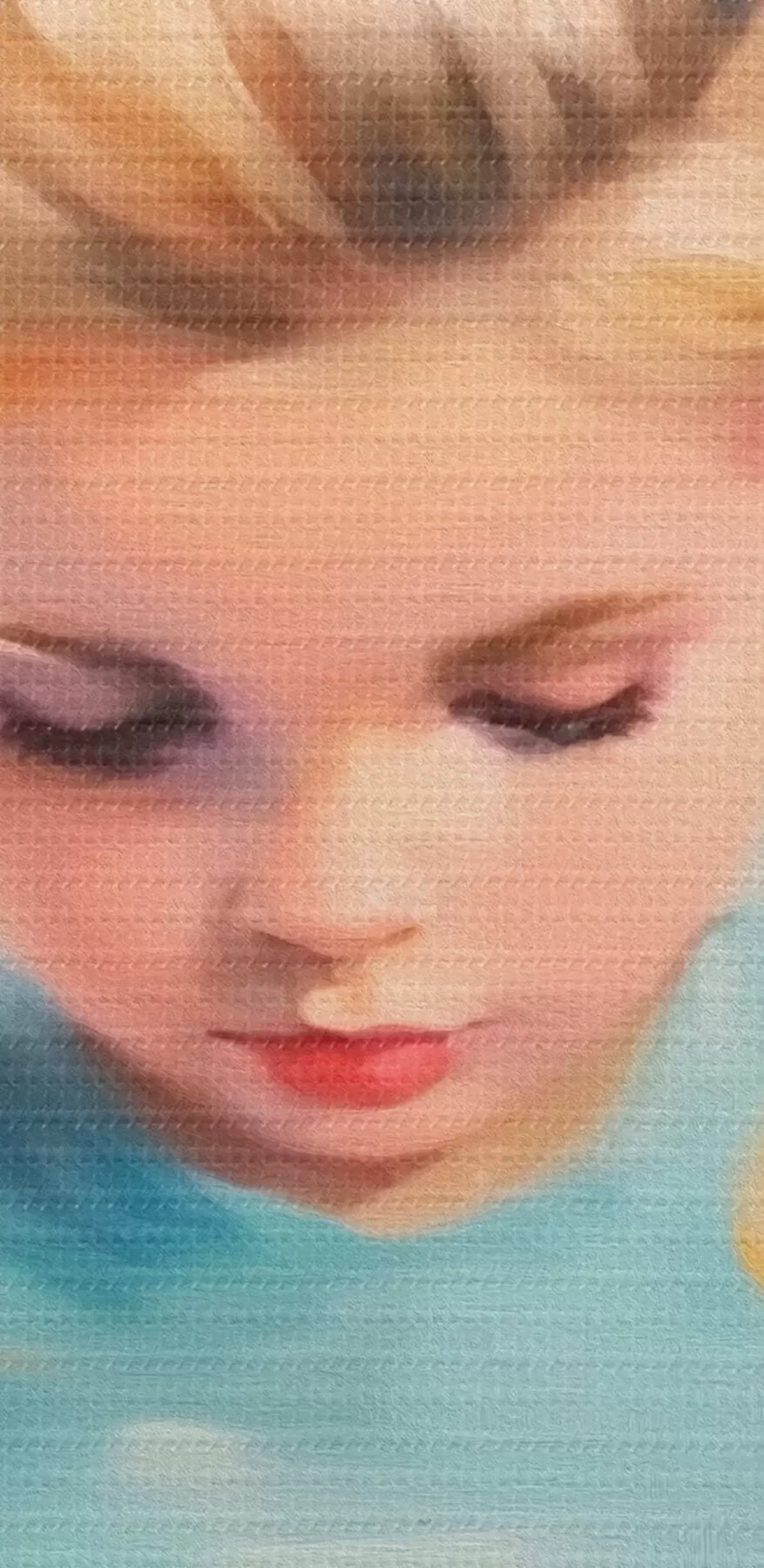 Selle lõuendi peenike niidipunus meenutab professionaalse kunstniku lõuendi pinda.