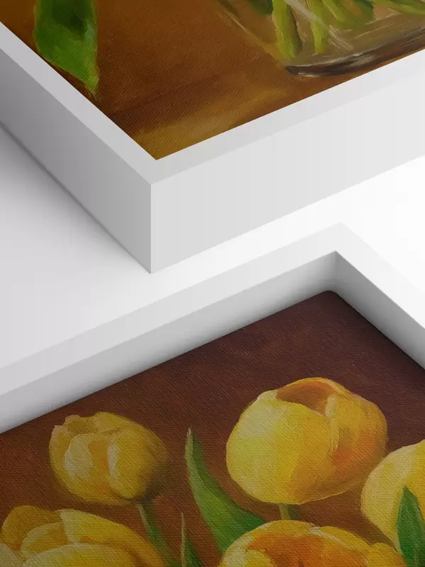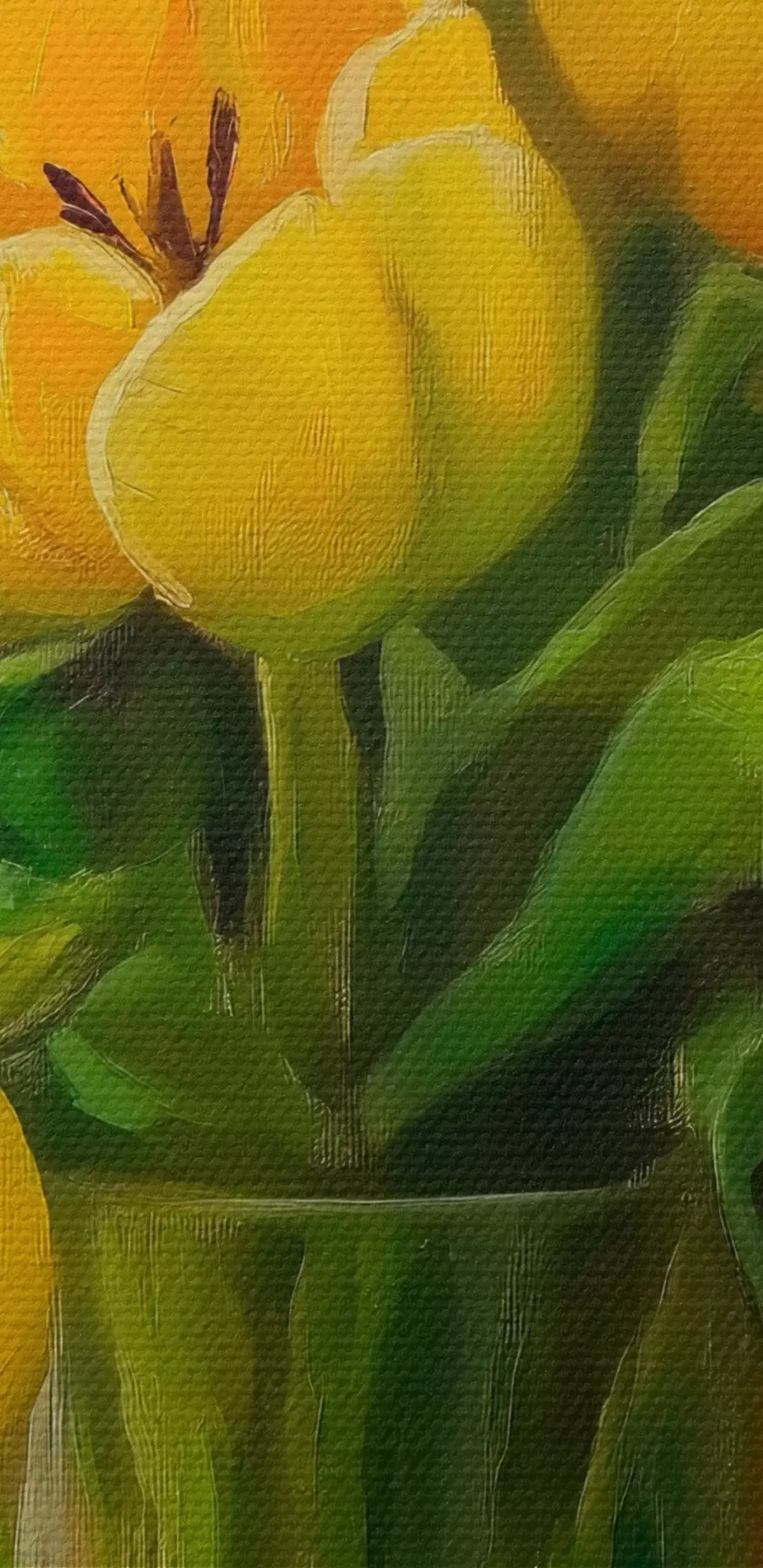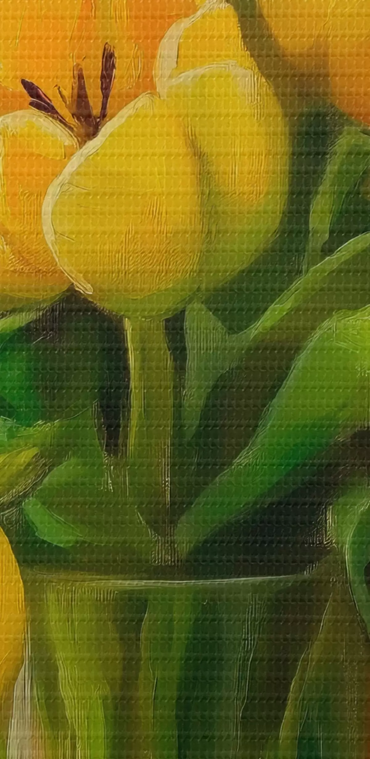 Maalid Kollased tulbid läbipaistvas vaasis Nr s41817