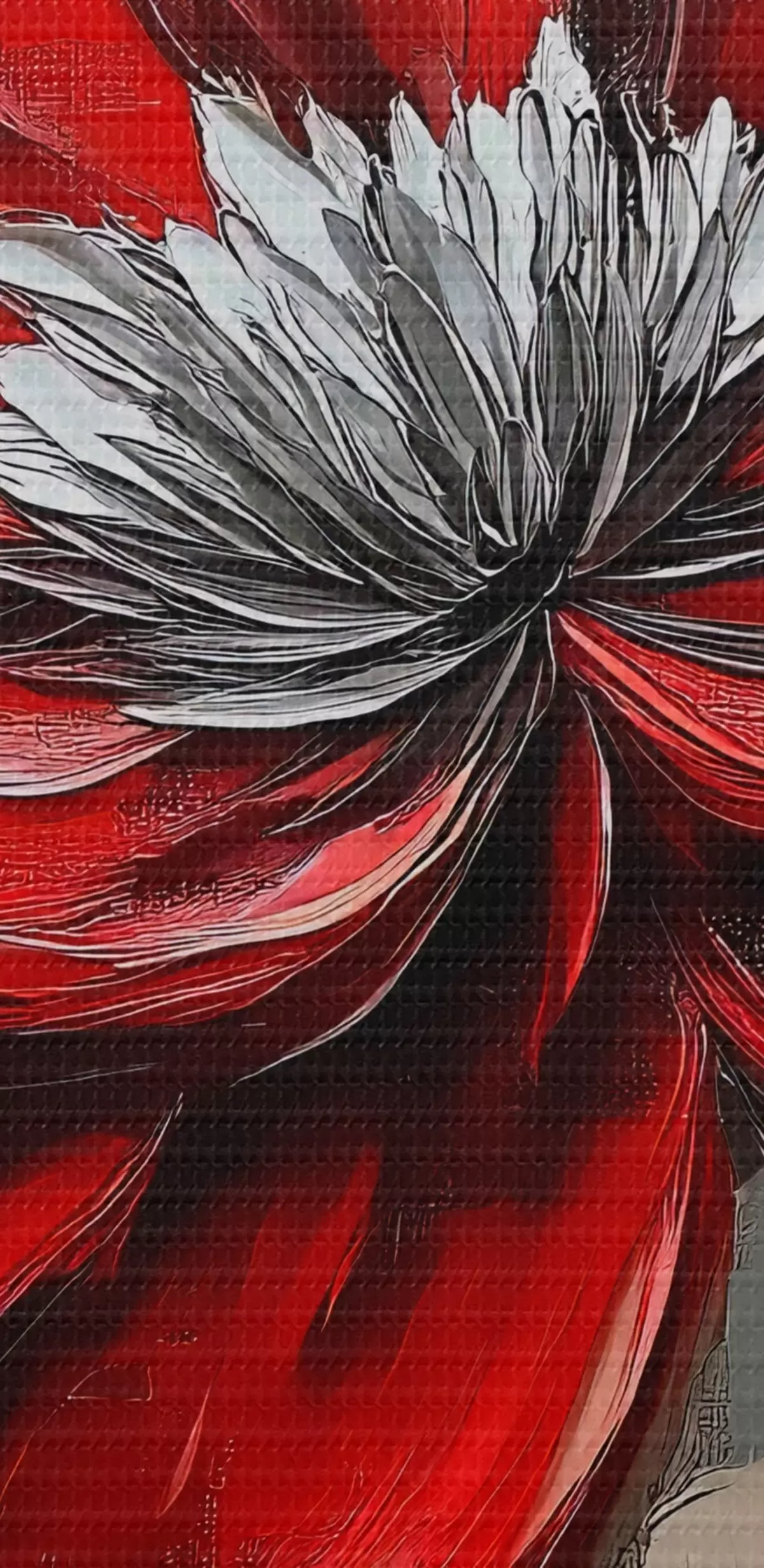 Selle lõuendi peenike niidipunus meenutab professionaalse kunstniku lõuendi pinda.