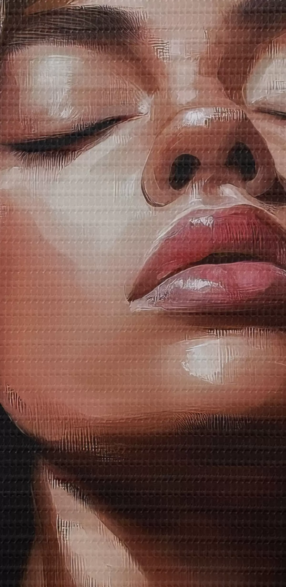 Selle lõuendi peenike niidipunus meenutab professionaalse kunstniku lõuendi pinda.