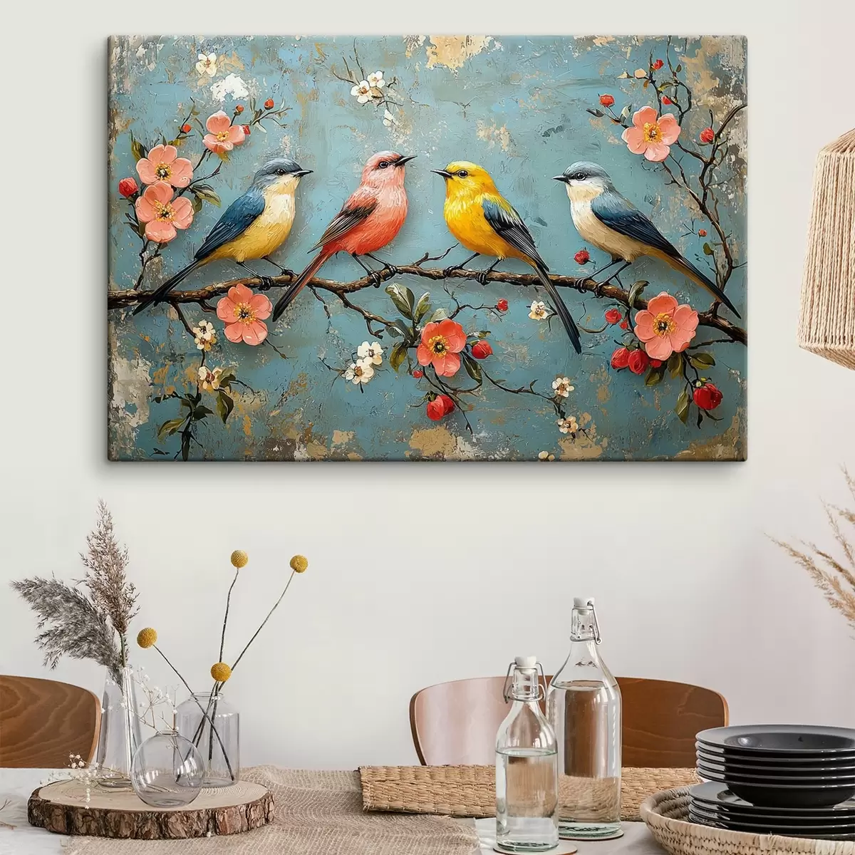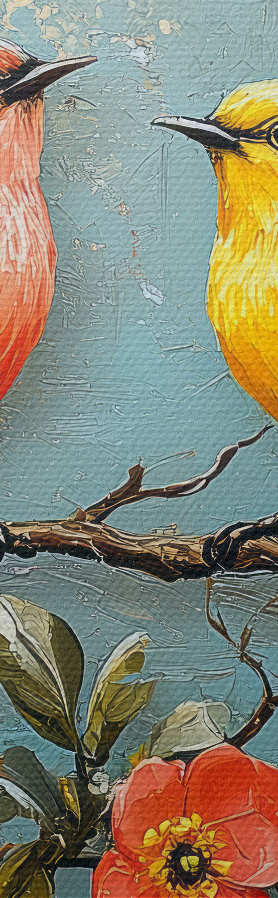 Maalid Linnud sakura oksal õlimaali stiilis Nr s41834