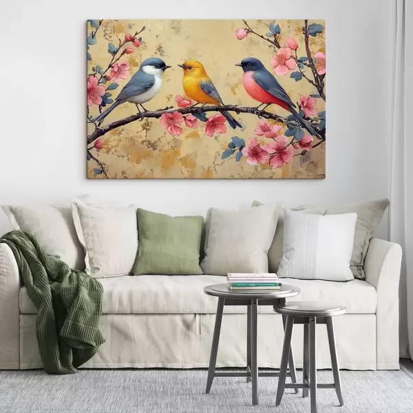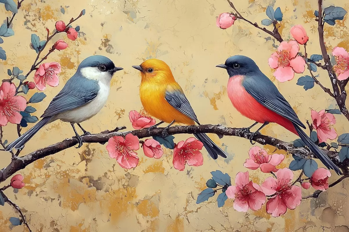 Maalid Varblased sakura oksal õlimaali stiilis Nr s41835