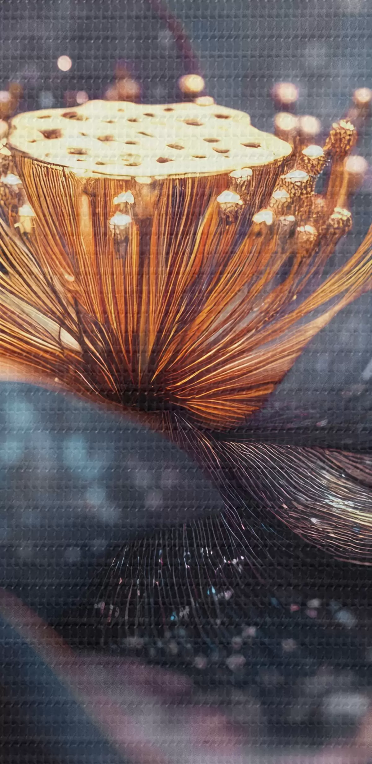 Selle lõuendi peenike niidipunus meenutab professionaalse kunstniku lõuendi pinda.