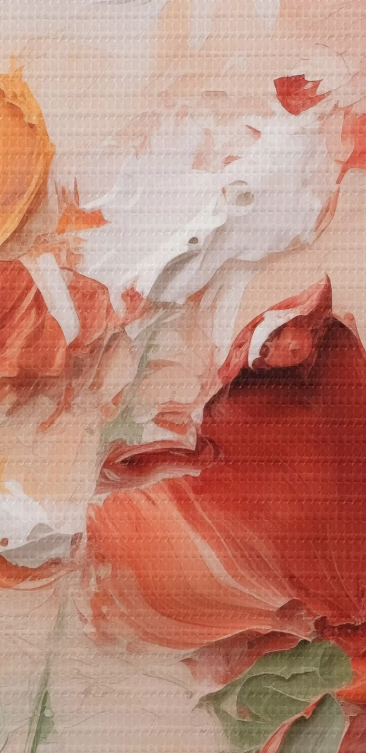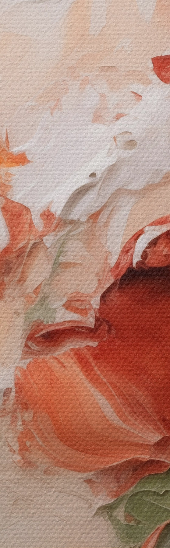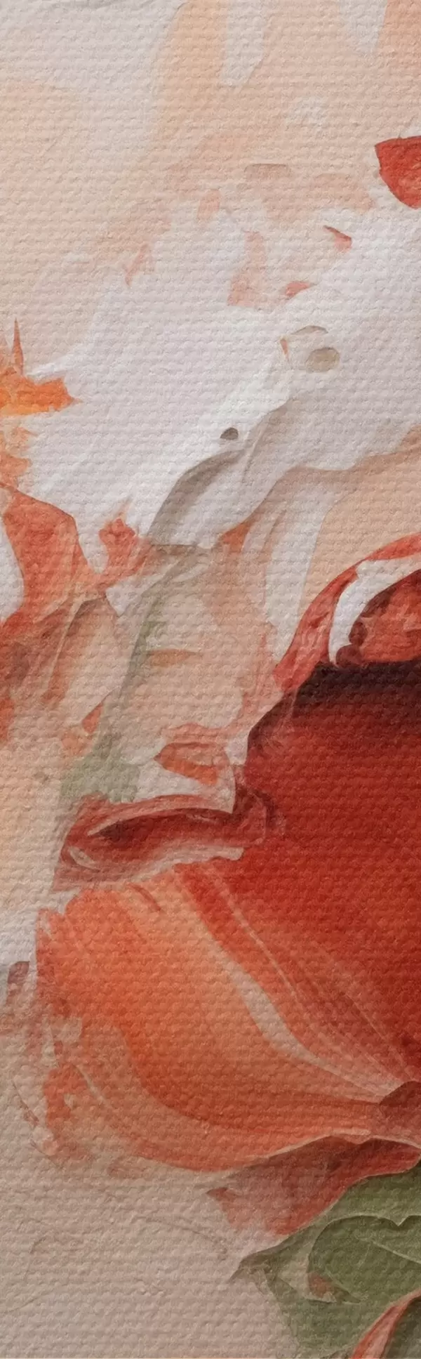 Pilt Abstraktne kompositsioon lilledest, pintslitõmmete imitatsioon, roheline, punased toonid s41852