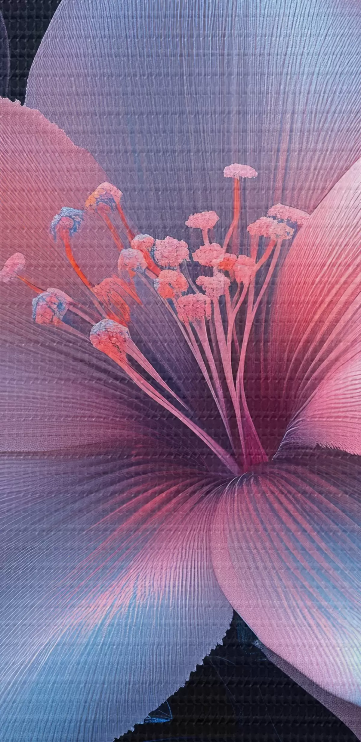 Selle lõuendi peenike niidipunus meenutab professionaalse kunstniku lõuendi pinda.
