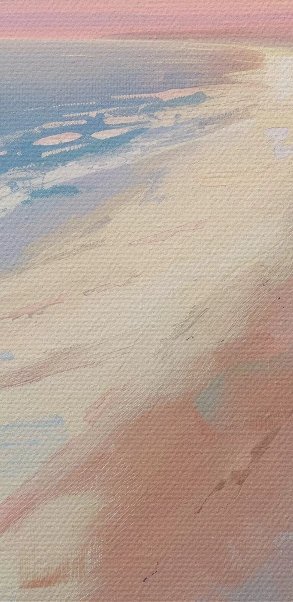 Selle lõuendi peenike niidipunus meenutab professionaalse kunstniku lõuendi pinda.