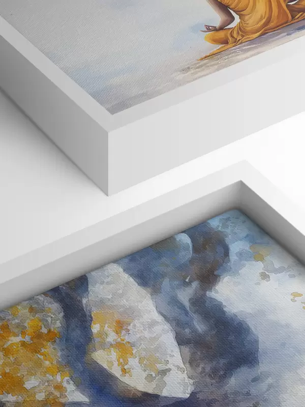 Maalid Meditatsioon puu all, Buddha, akvarellstiilis, kollased ja sinised värvid Nr s41888