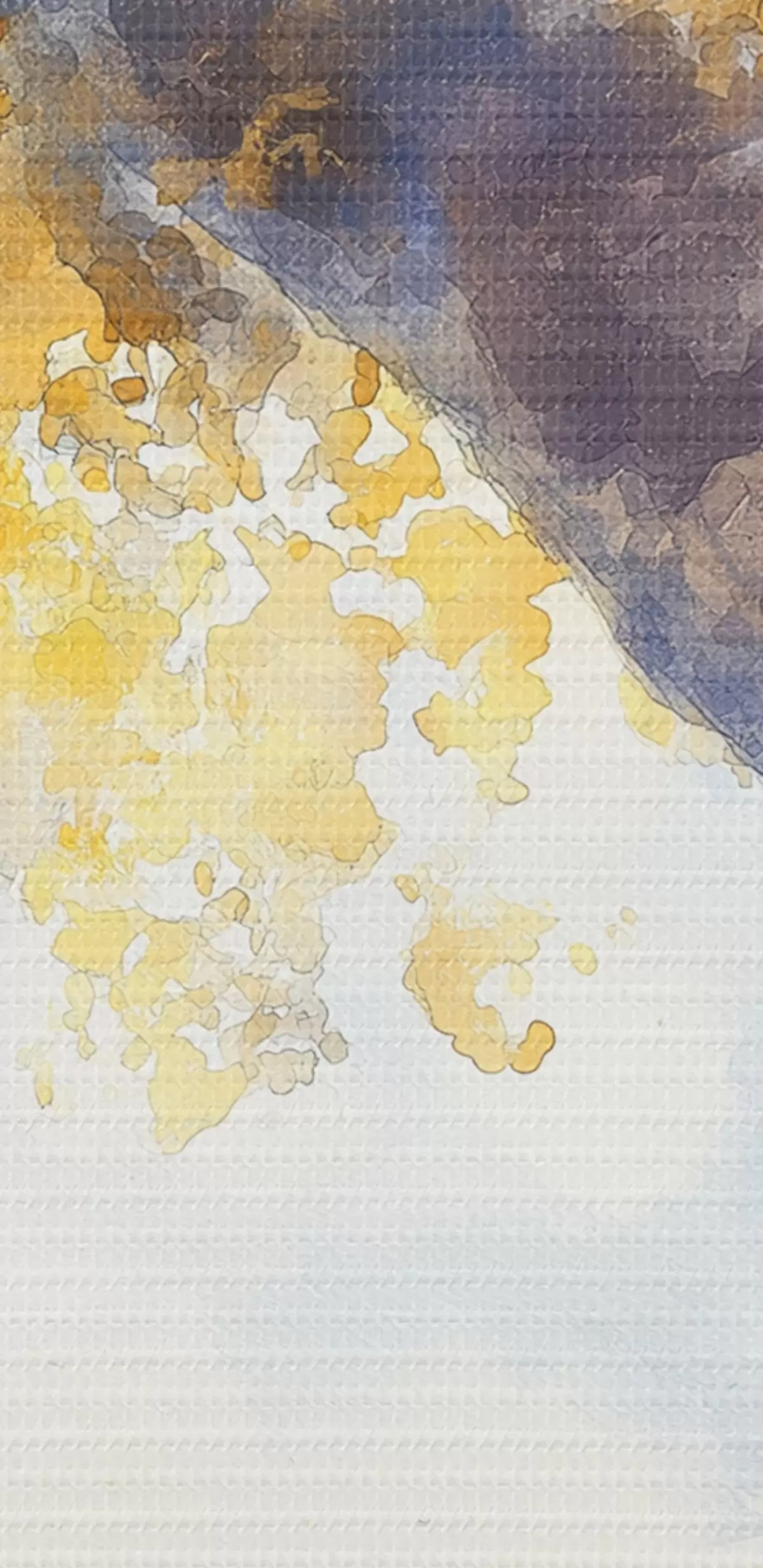 Selle lõuendi peenike niidipunus meenutab professionaalse kunstniku lõuendi pinda.