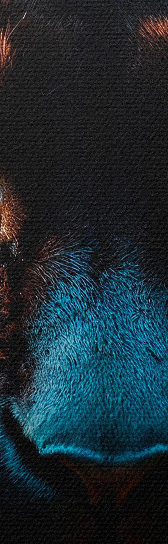 Selle lõuendi peenike niidipunus meenutab professionaalse kunstniku lõuendi pinda.