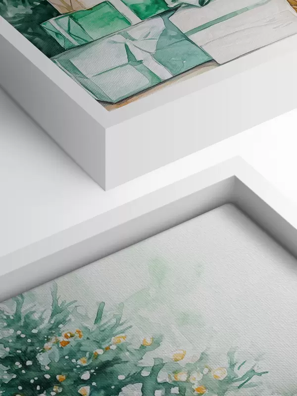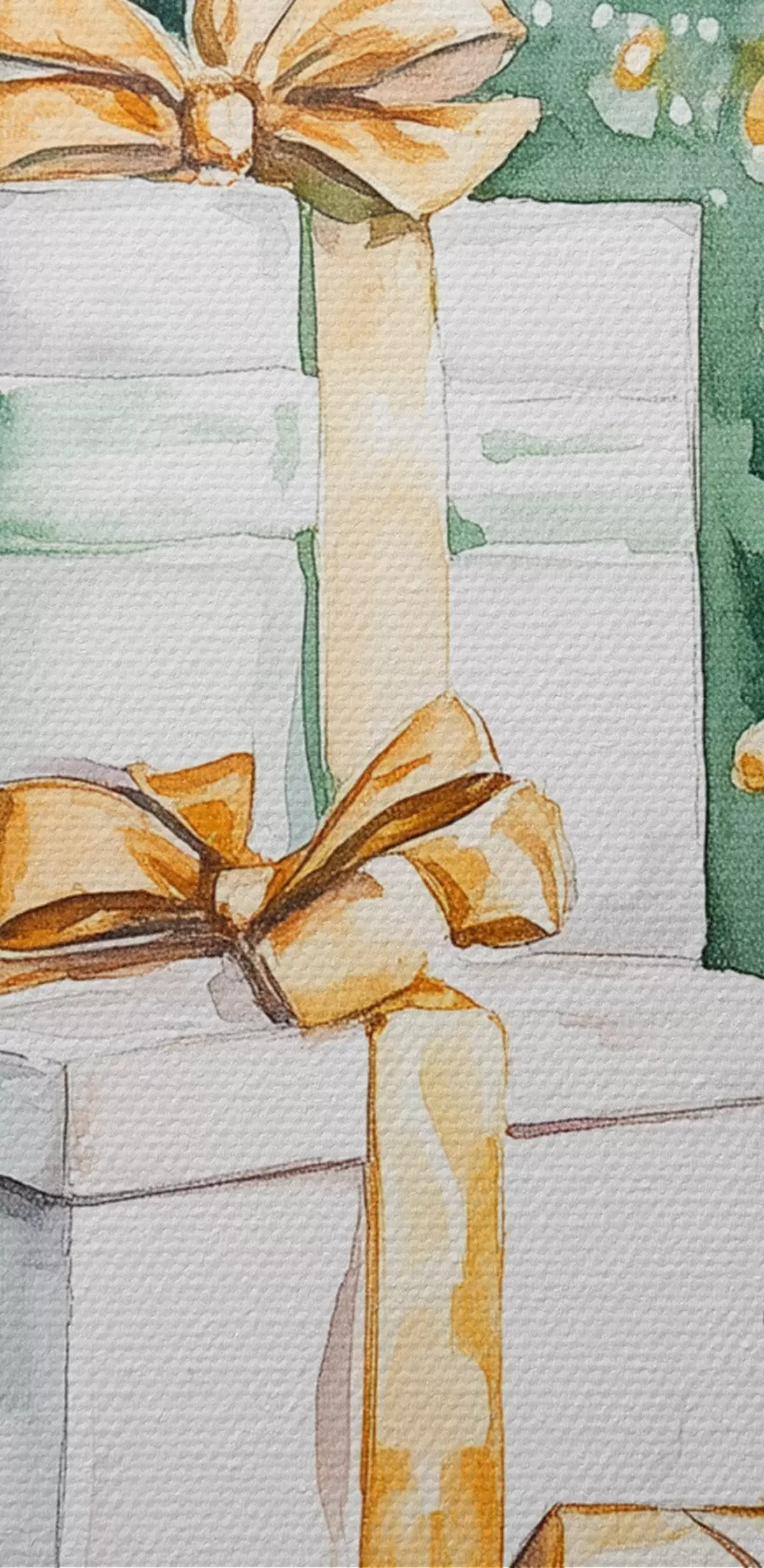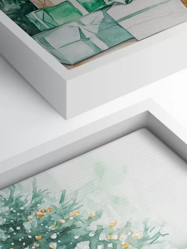 Maalid Jõulupuu koos pakitud kingitustega, akvarellistiilis, pidulik Nr s41944
