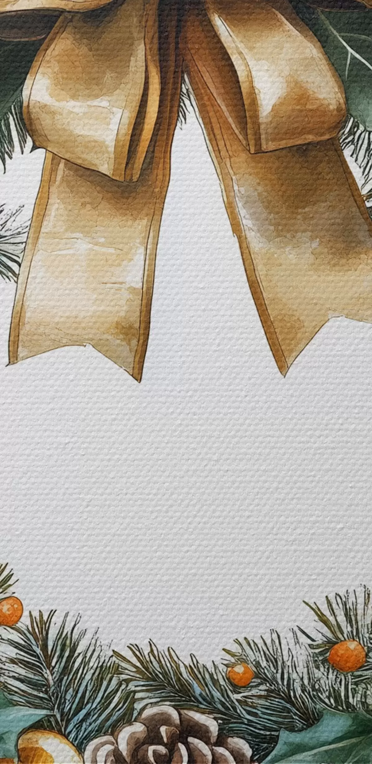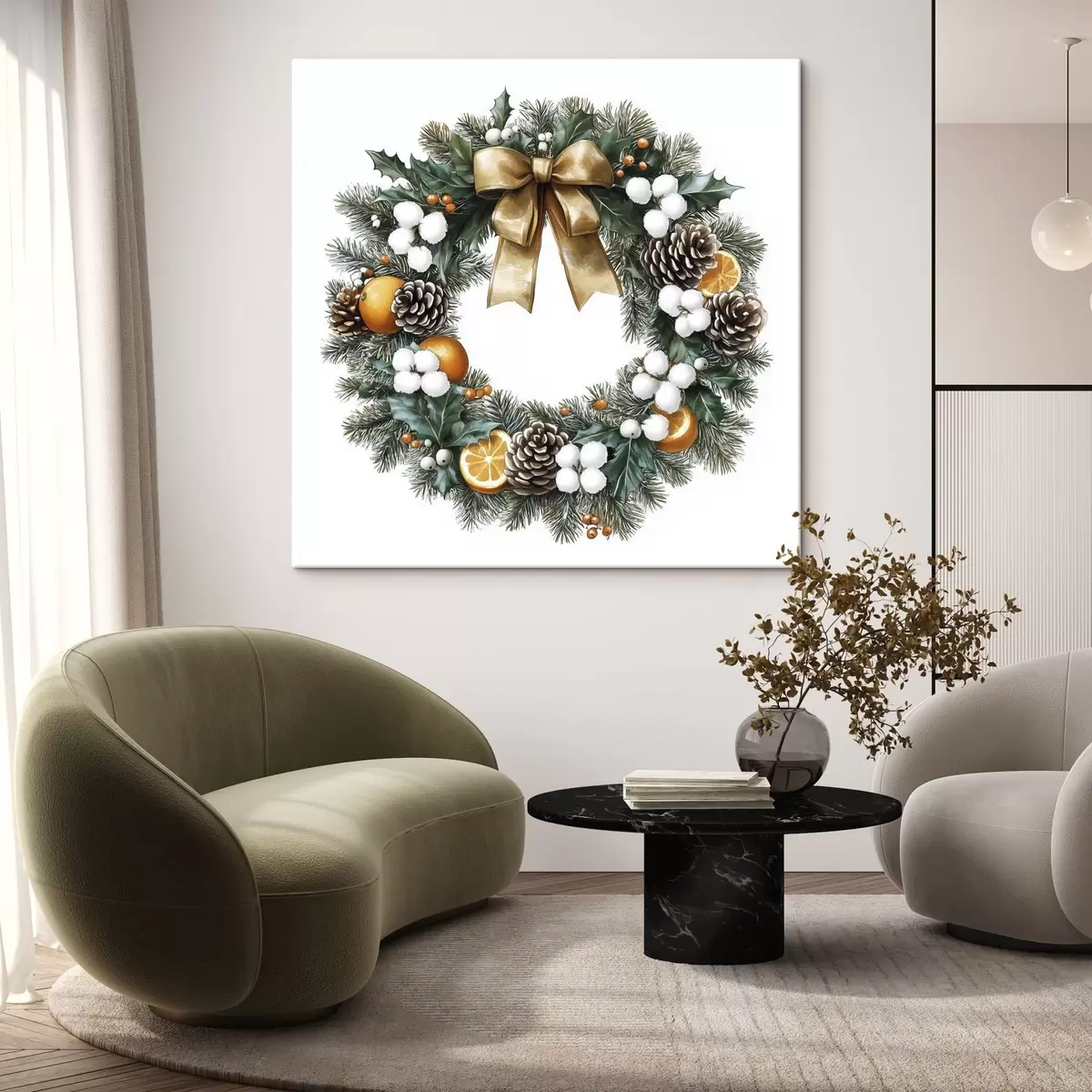 Maalid Jõulupärja pärg vibu, puuvilla, apelsinide, marjade ja käbidega Nr s41962