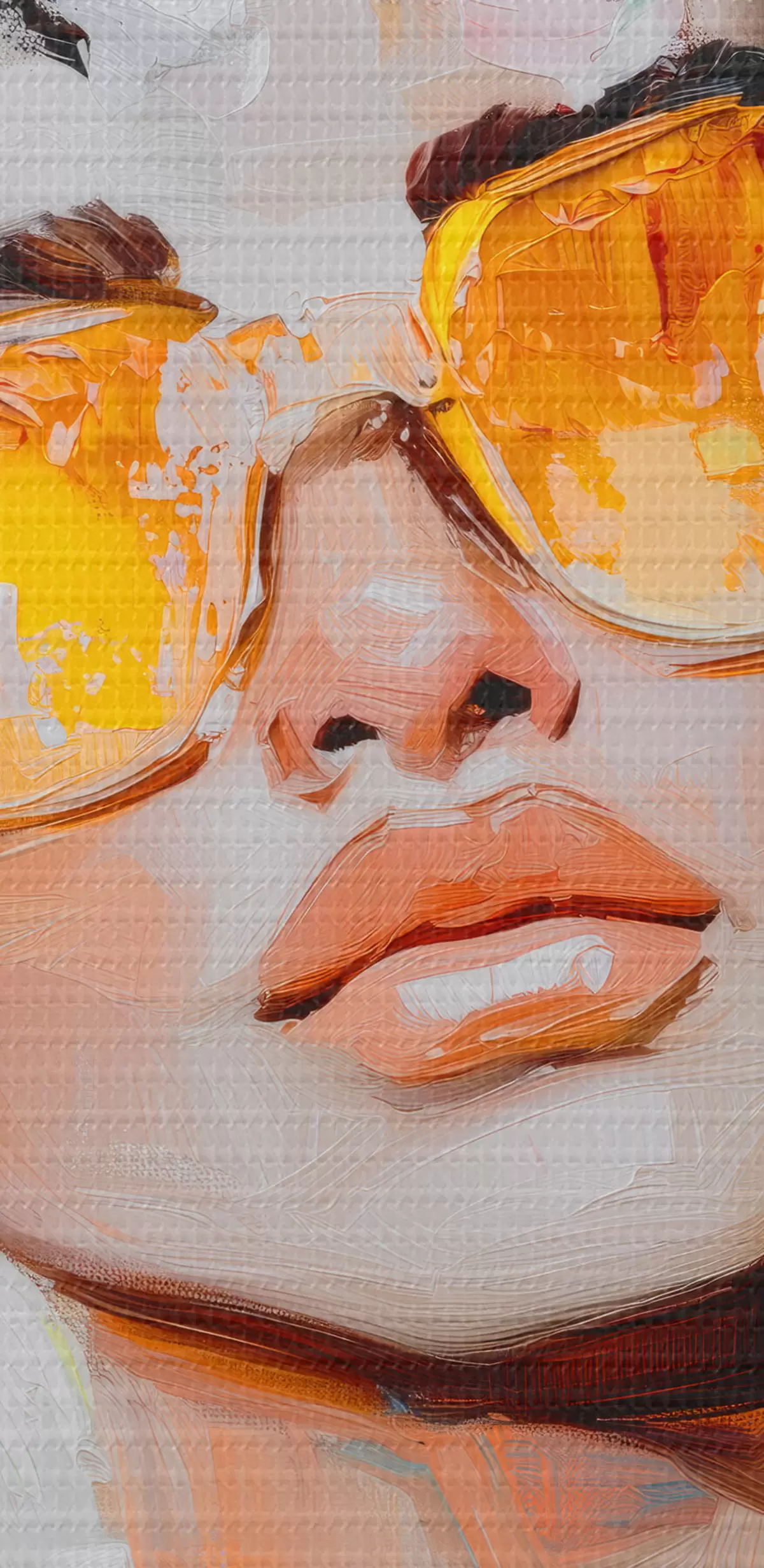 Selle lõuendi peenike niidipunus meenutab professionaalse kunstniku lõuendi pinda.