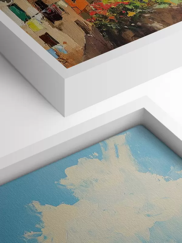 Me müüme pilte kanderaamidel - see on puidust raam, millele lõuend on pingutatud. Seda pilti ei ole vaja raamida, seda võib riputada otse seinale.