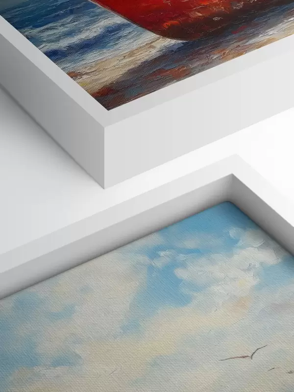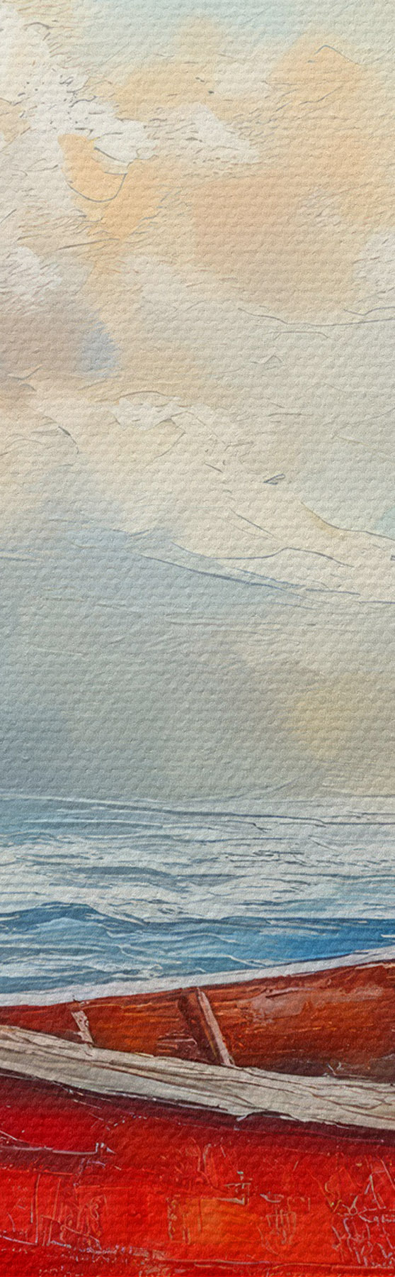 Maalid punane paat mere ääres õlivärvi stiilis Nr s42009
