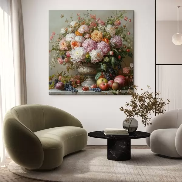 Maalid lilled vaasis ja puuviljad Nr s42021