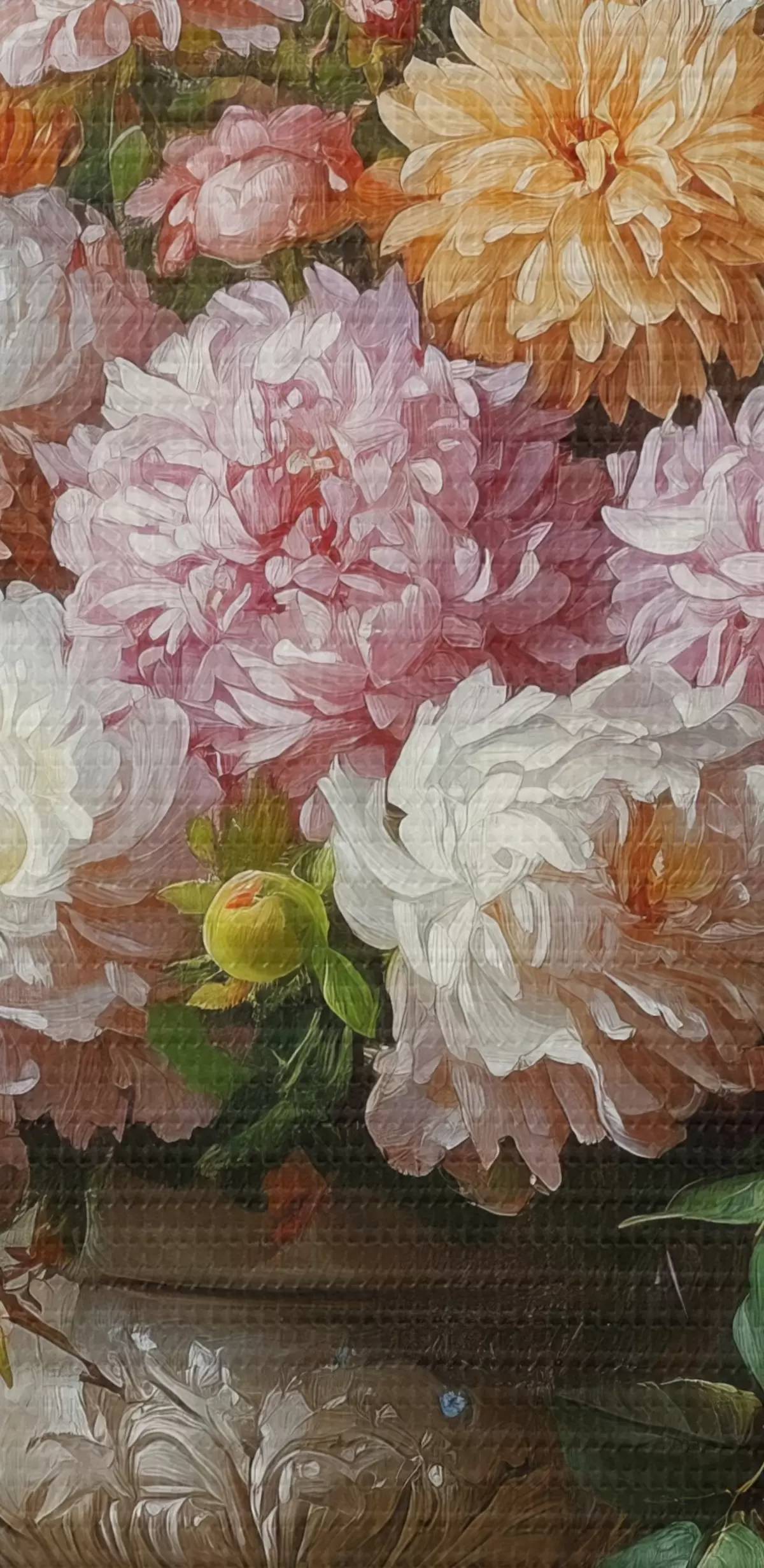 Selle lõuendi peenike niidipunus meenutab professionaalse kunstniku lõuendi pinda.