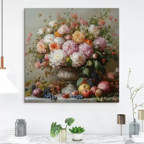 Maalid lilled vaasis ja puuviljad Nr s42021