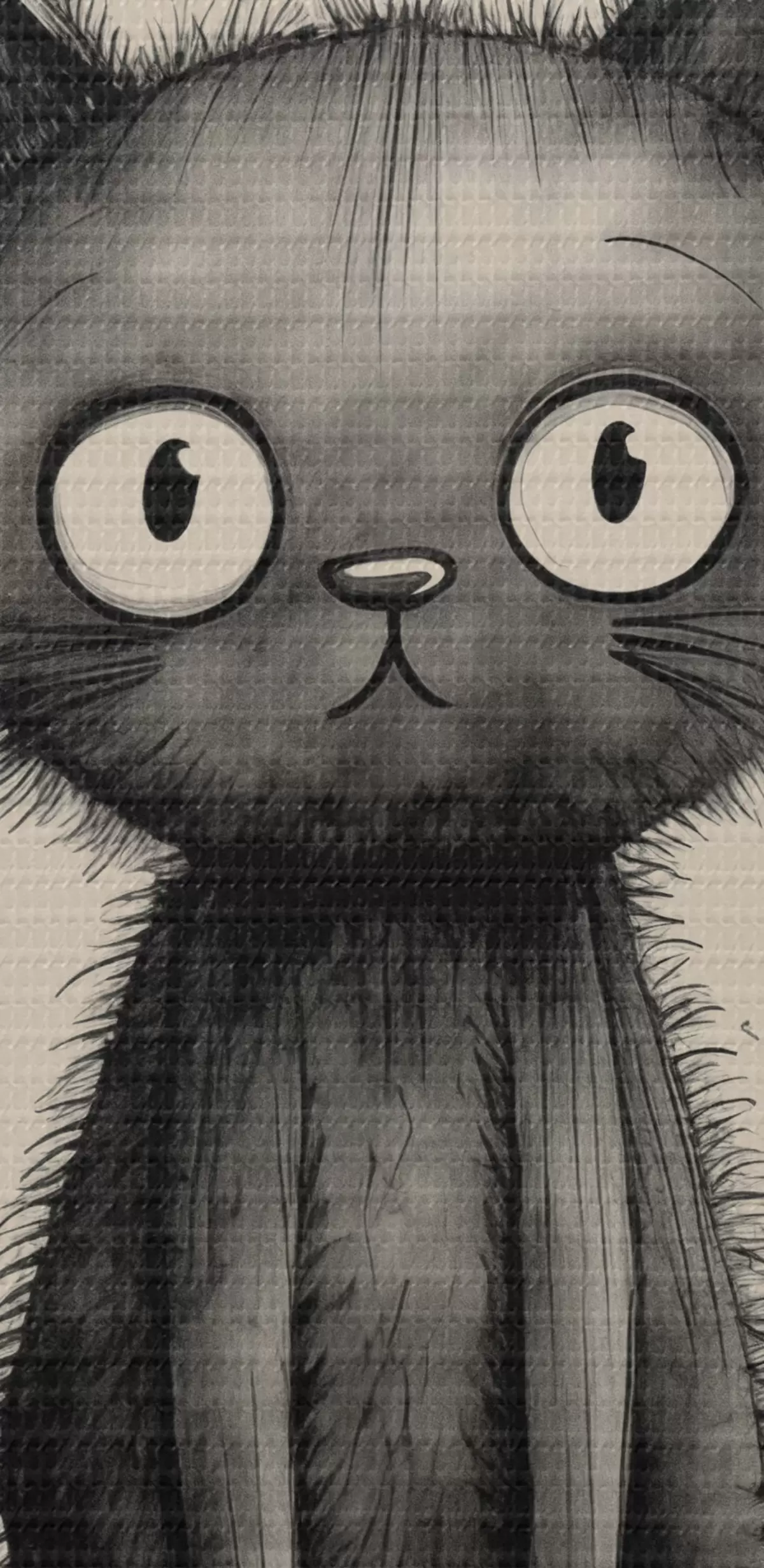 Selle lõuendi peenike niidipunus meenutab professionaalse kunstniku lõuendi pinda.