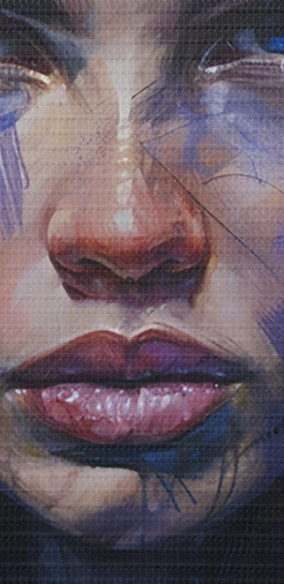 Selle lõuendi peenike niidipunus meenutab professionaalse kunstniku lõuendi pinda.