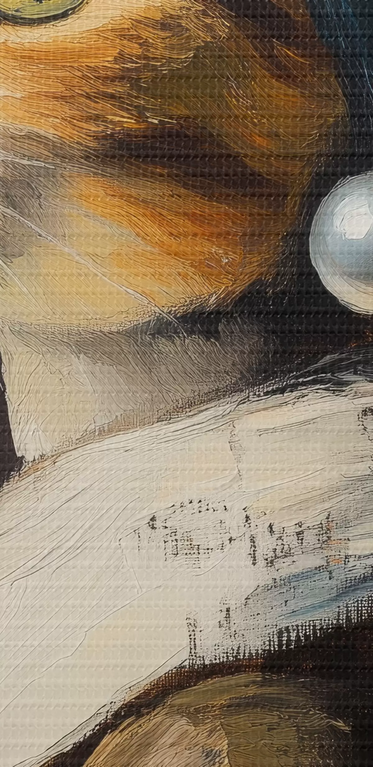 Selle lõuendi peenike niidipunus meenutab professionaalse kunstniku lõuendi pinda.