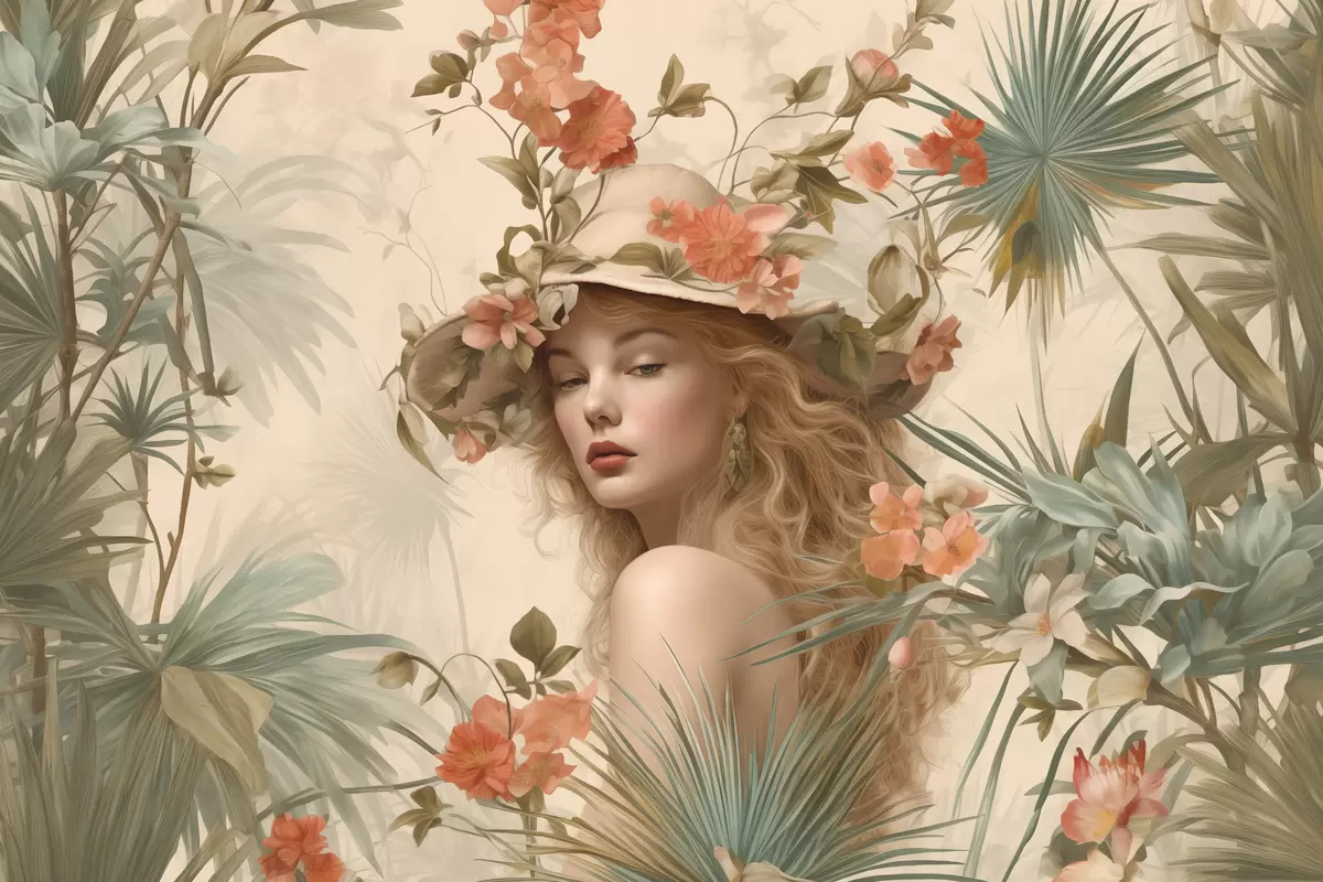 Maalid Tüdruk mütsiga troopikas vintage stiilis Nr s42115