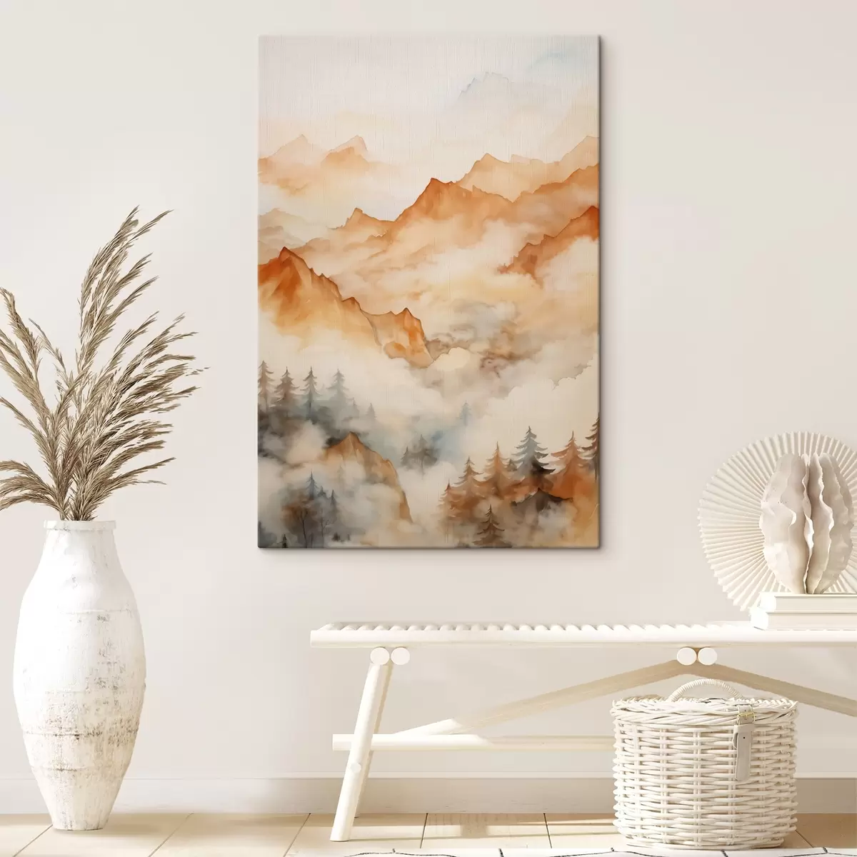 Maalid Mets ja mäed akvarelli imitatsioon, oranžid toonid Nr s42119
