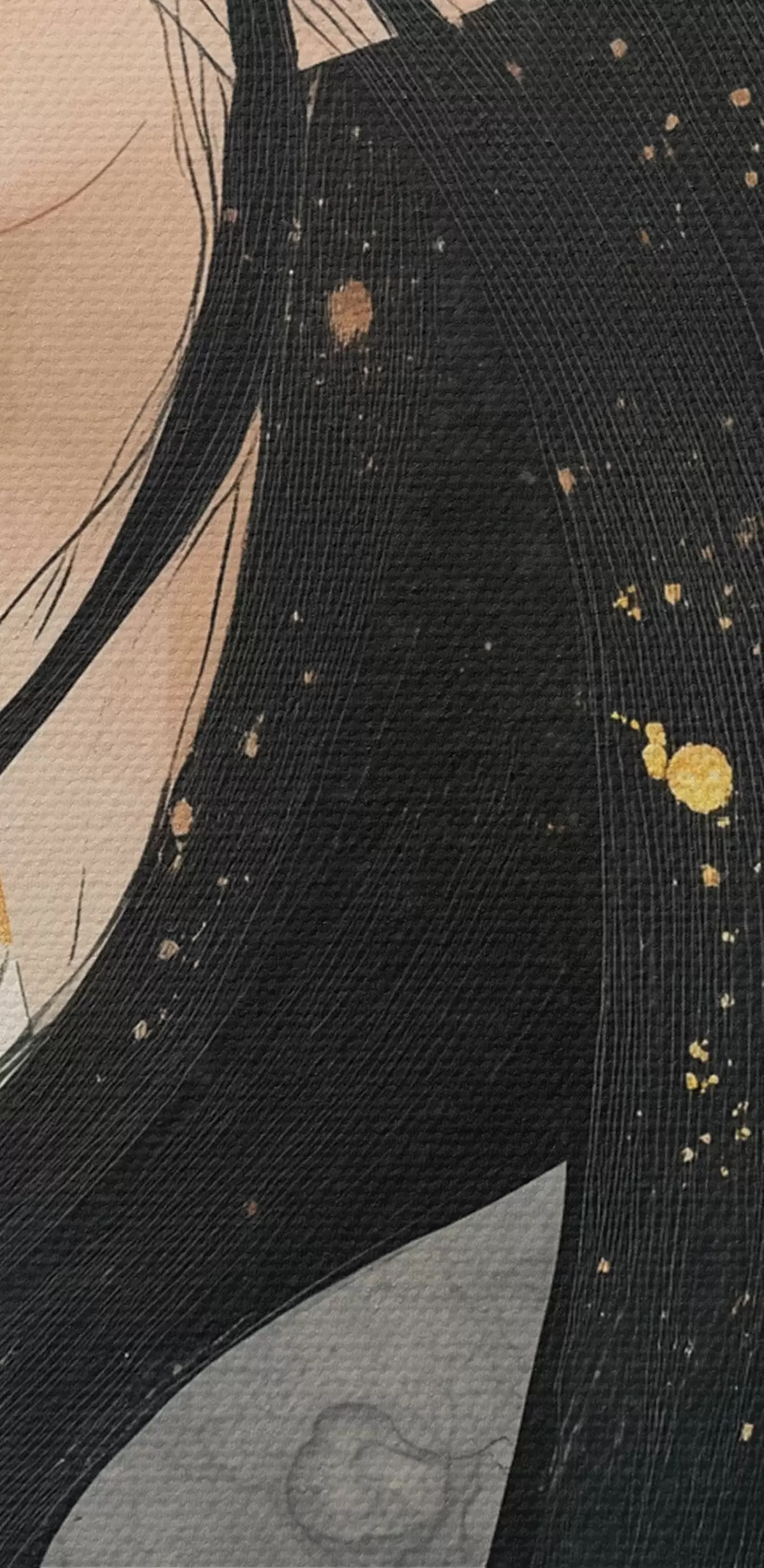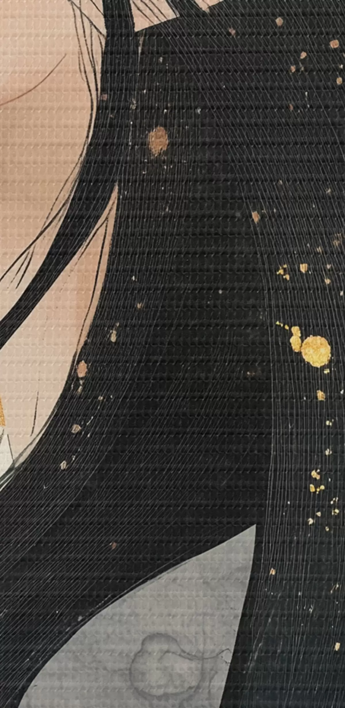 Selle lõuendi peenike niidipunus meenutab professionaalse kunstniku lõuendi pinda.