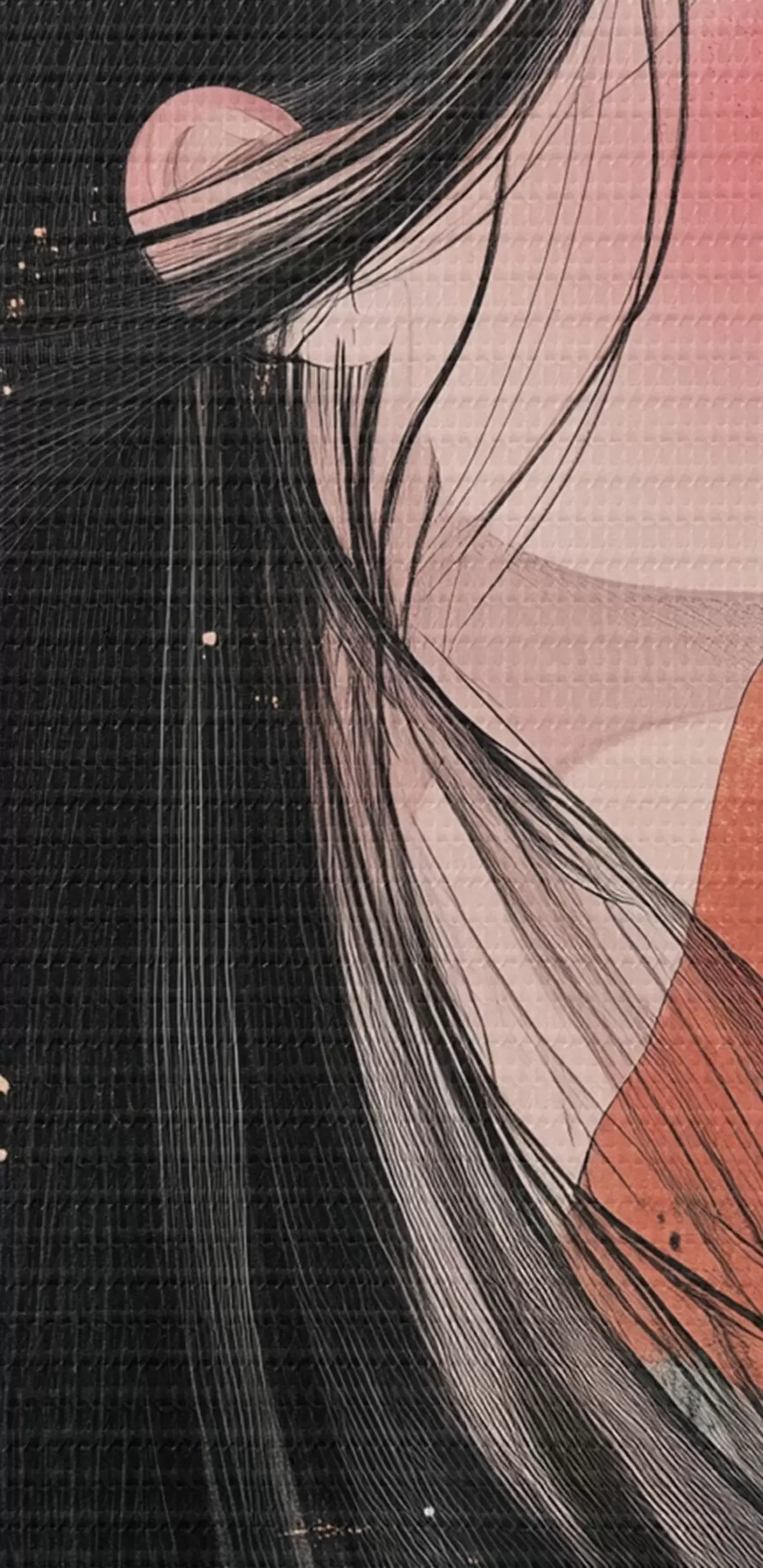 Selle lõuendi peenike niidipunus meenutab professionaalse kunstniku lõuendi pinda.