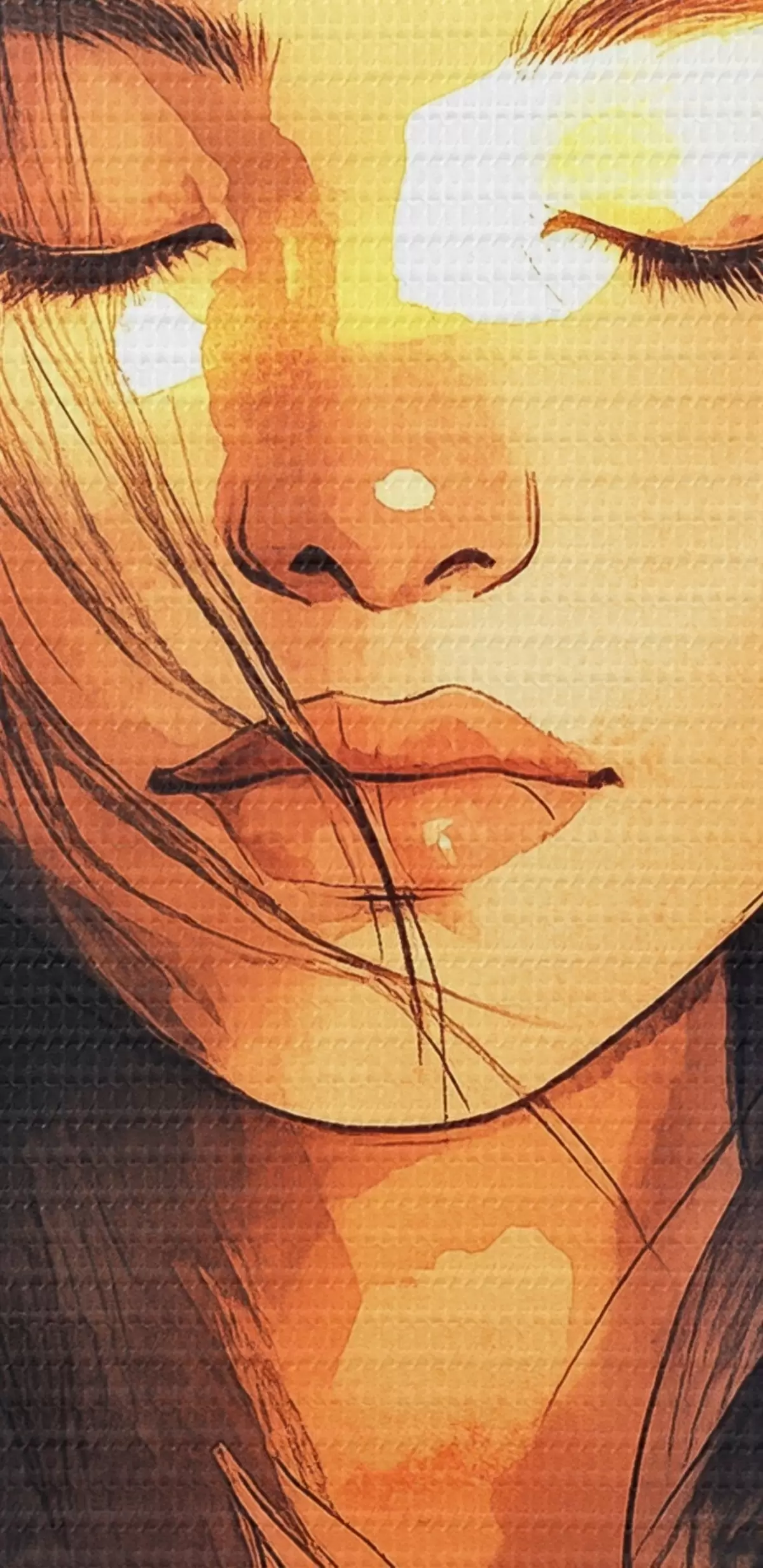 Selle lõuendi peenike niidipunus meenutab professionaalse kunstniku lõuendi pinda.