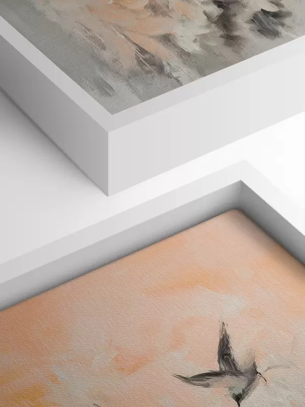 Maalid Abstraktsioon lendavate lindudega, akrüülstiilis, roosa ja beež värvid Nr s42205