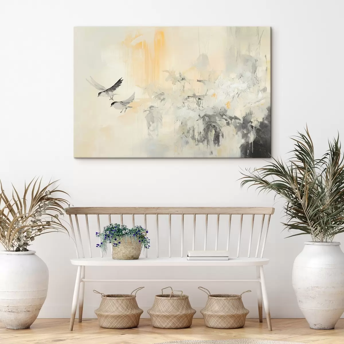 Maalid Abstraktsioon lindudega, akrüülstiilis, hallid ja beežid värvid Nr s42206