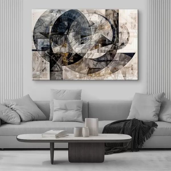 Maalid Abstraktne kaasaegne geomeetriline kompositsioon, millel on kattuvad kujundid ja trükk hallis, mustas ja beežis toonides Nr s42212