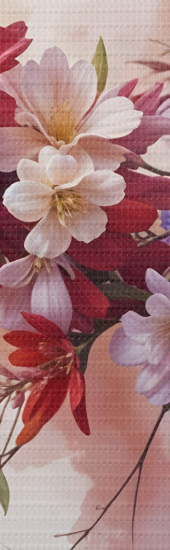 Maalid Värvilised lilled, sealhulgas punased, roosad ja lillad daaliad, päevaküünlad ja muud õied pehmel, hägustatud taustal Nr s42234