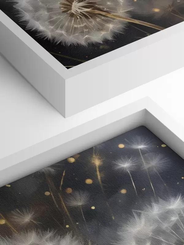 Maalid Võililleõied oma kohevate valgete seemnepeadega tumedal taustal, mis loovad maagilise atmosfääri Nr s42235