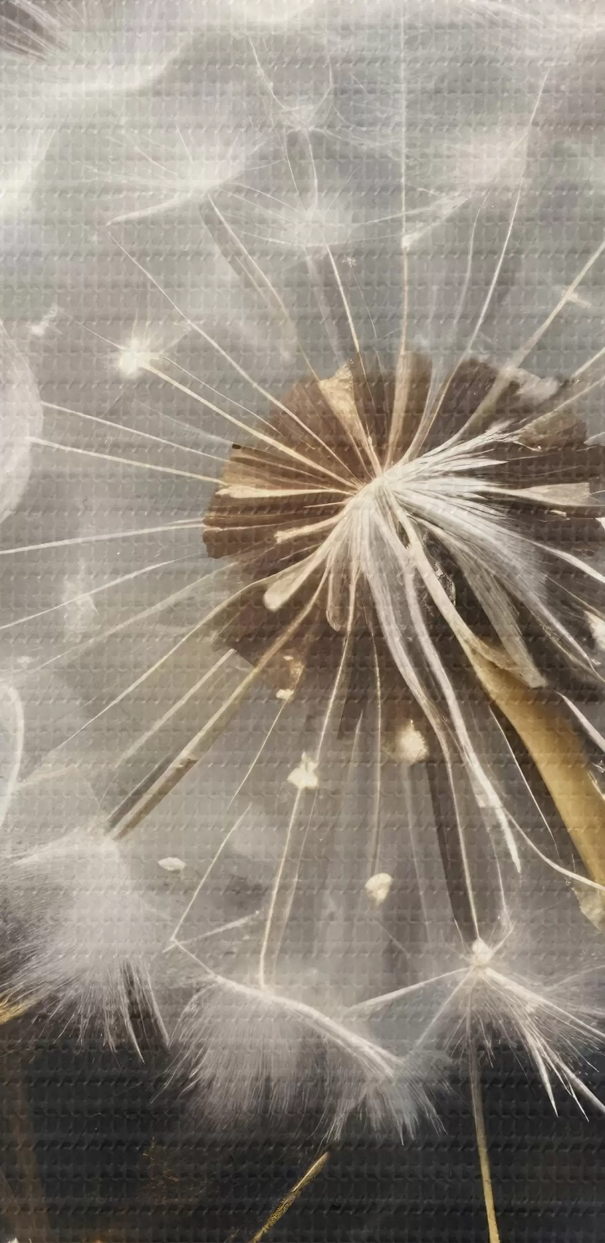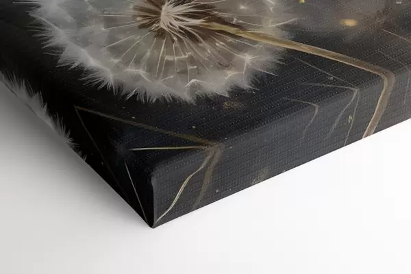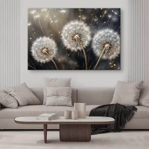 Maalid Võililleõied oma kohevate valgete seemnepeadega tumedal taustal, mis loovad maagilise atmosfääri Nr s42235
