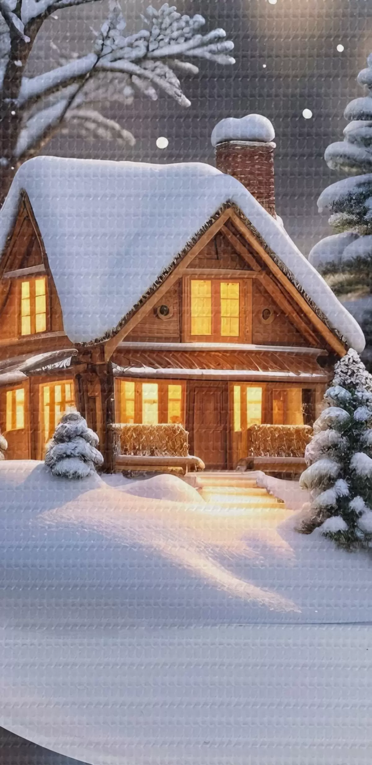 Maalid Klaasist jõuluglobus, mille sees on lumine talvemaastik, millel on hubane mändidega kaetud metsamajas asuv majake Nr s42236