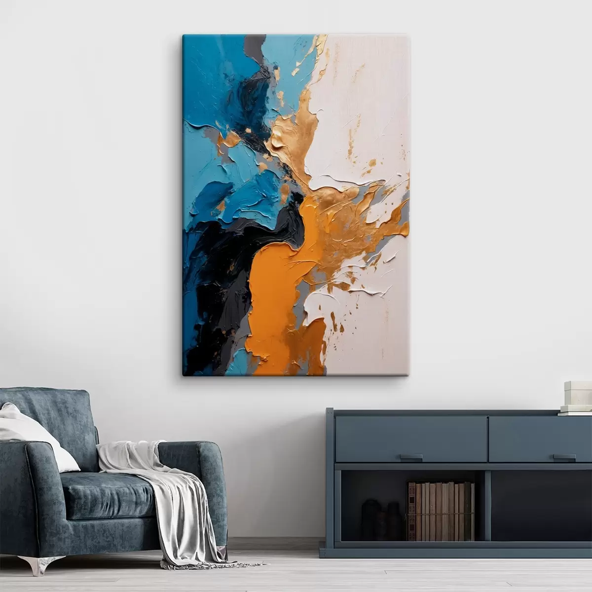 Maalid Abstraktne maal sinise valge ja kollase värviga Nr s42254