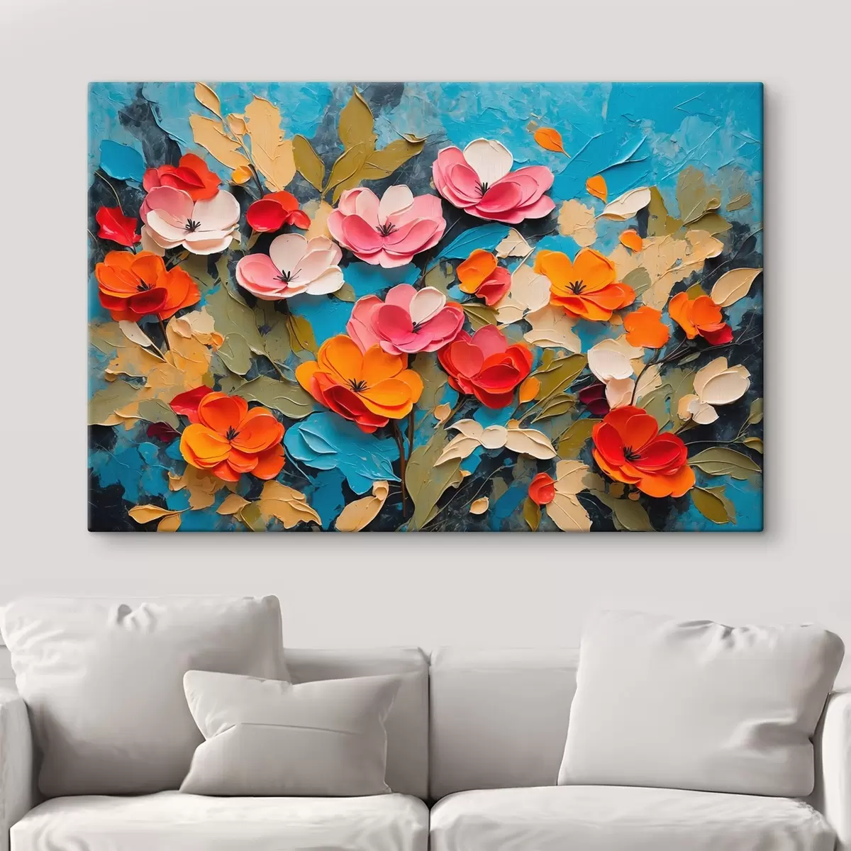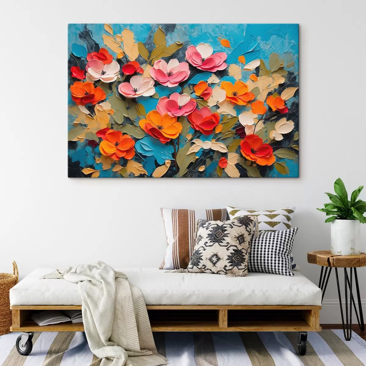 Maalid Lilled ja lehed sinisel taustal Nr s42255