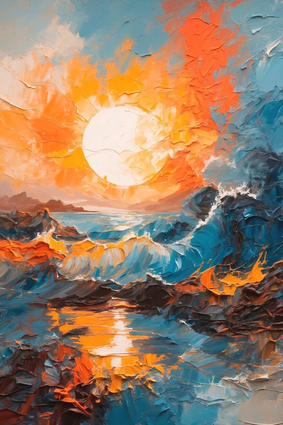 Maalid Tormine meri ja päike õlimaalide stiilis Nr s42257