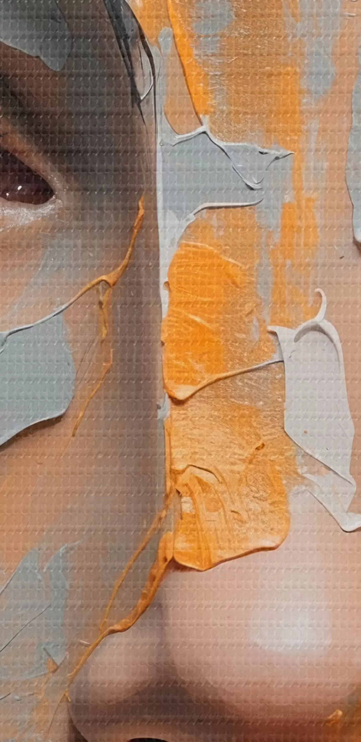 Selle lõuendi peenike niidipunus meenutab professionaalse kunstniku lõuendi pinda.